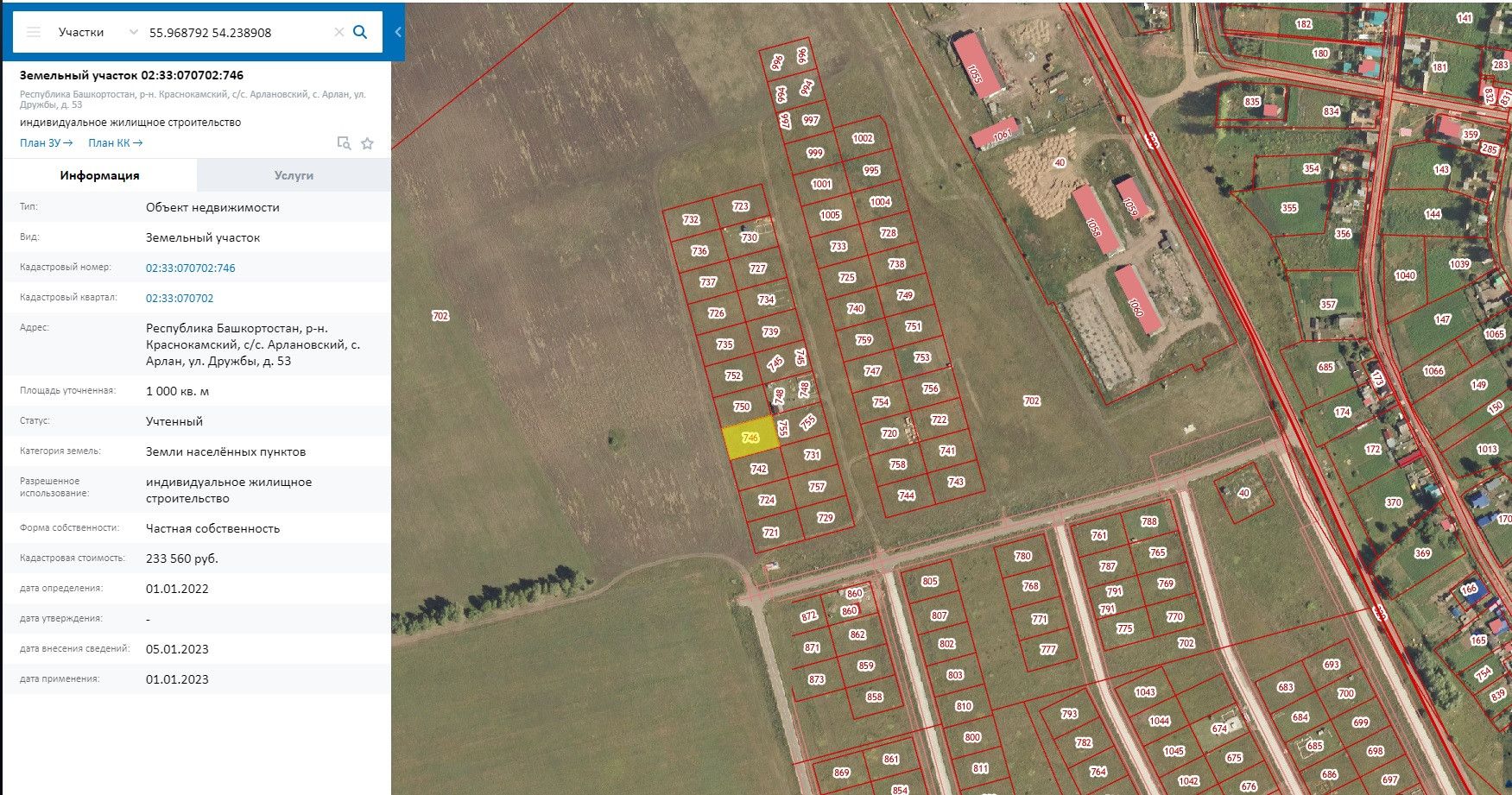 Kaдacтpoвый номер: 02:33:070702:746.