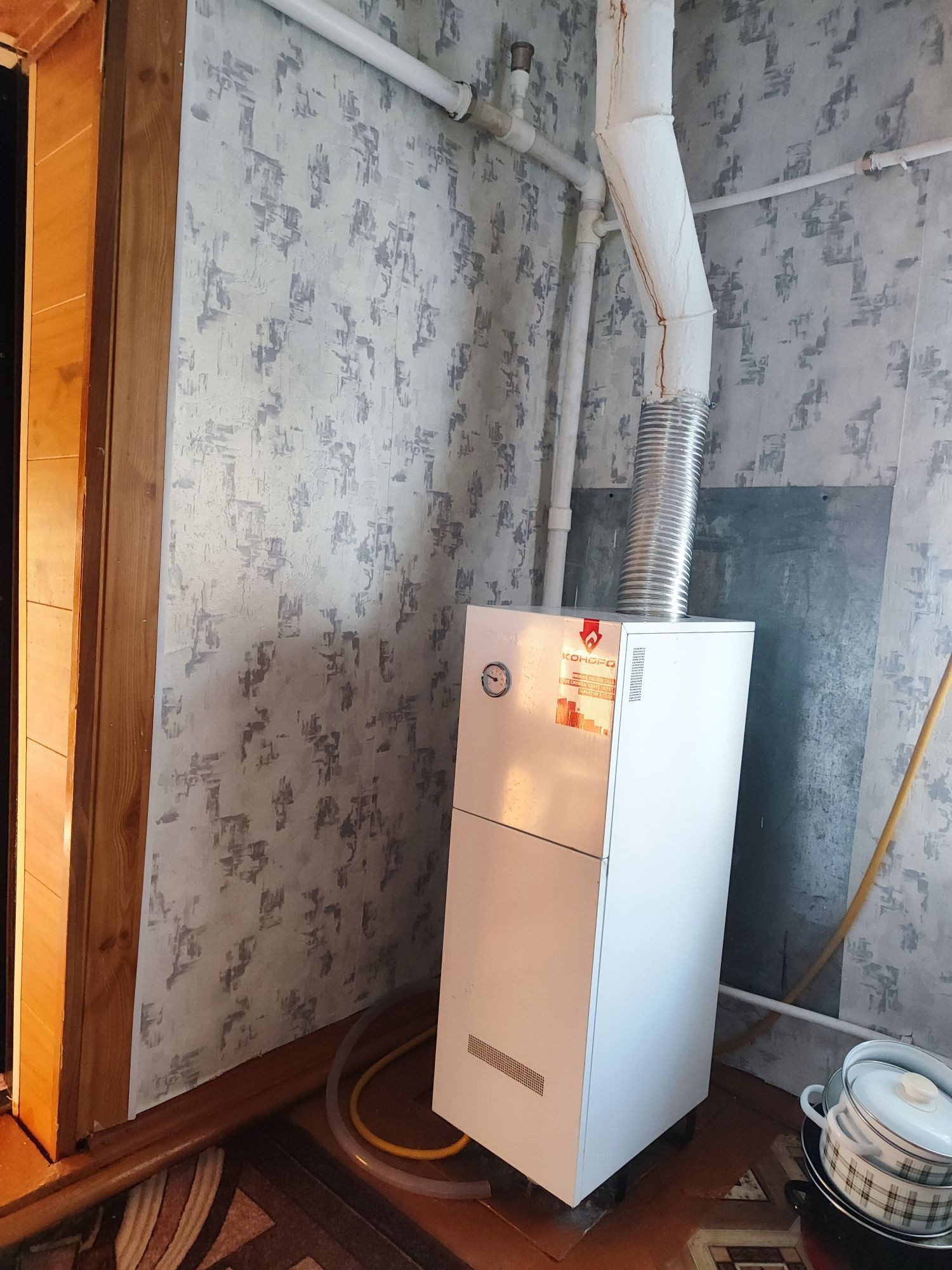В доме имеется газ, отопление (котёл), чистая вода (бойлер),установлена ванная комната с сан.узлом.