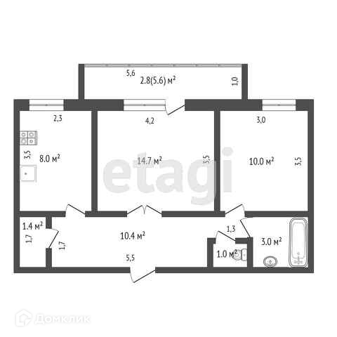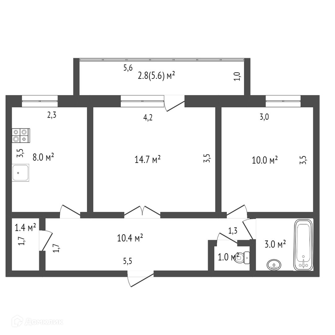 Балкон, лоджия 1 балкон