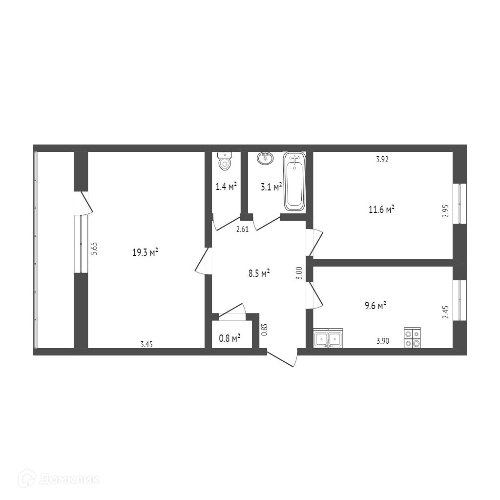 Общая площадь 46 м2