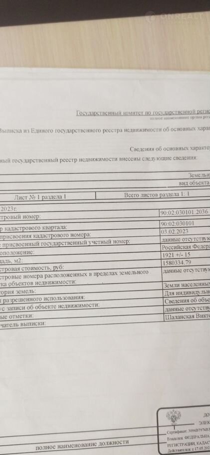 Стоимость недвижимости: