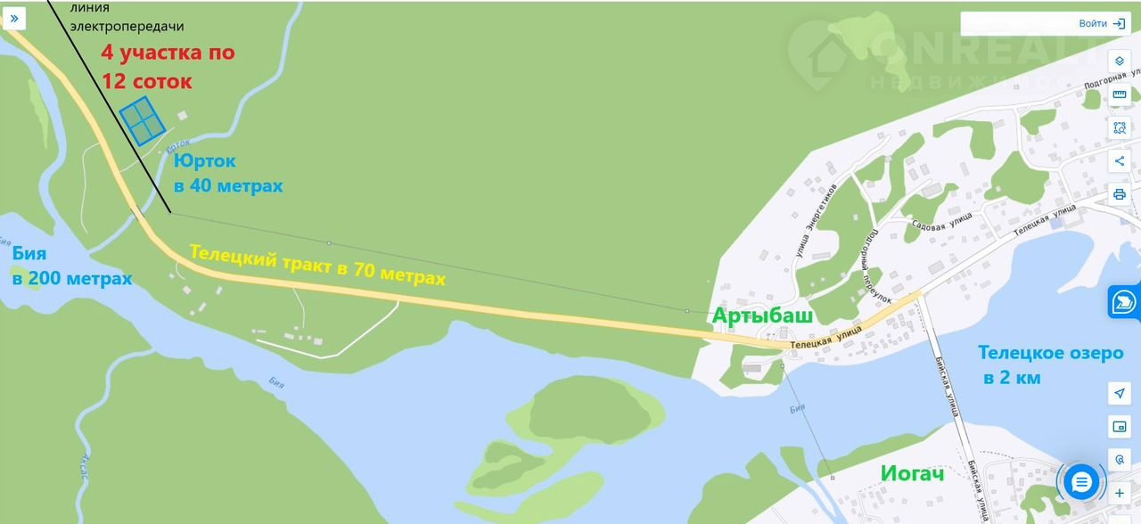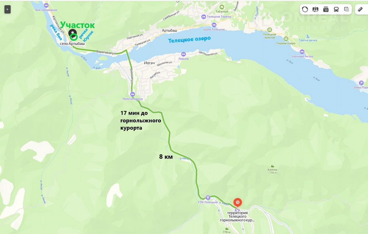 - Рядом протекает река Бия, а в 40 м течёт очаровательная горная речка Юрток.