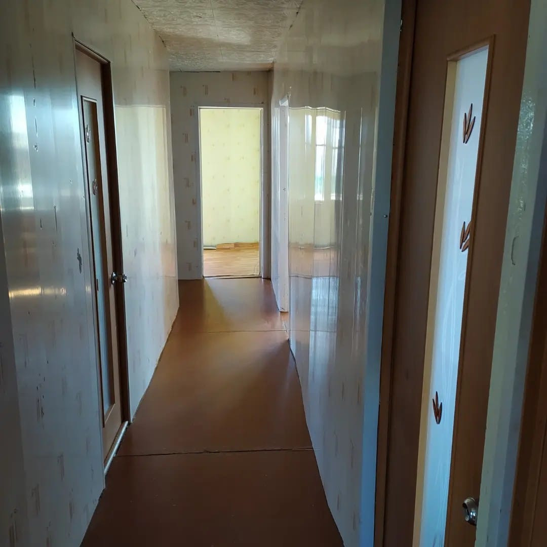 Продаётся трёхкомнатная квартира в двухквартирном жилом доме 1980 года постройки. В квартире вода, слив. Имеются надворные постройки: баня, летняя кухня, гараж, погреб, два больших сарая.
