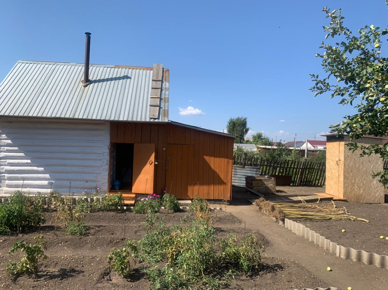 На участке располагаются культурные растения и хорошая баня.