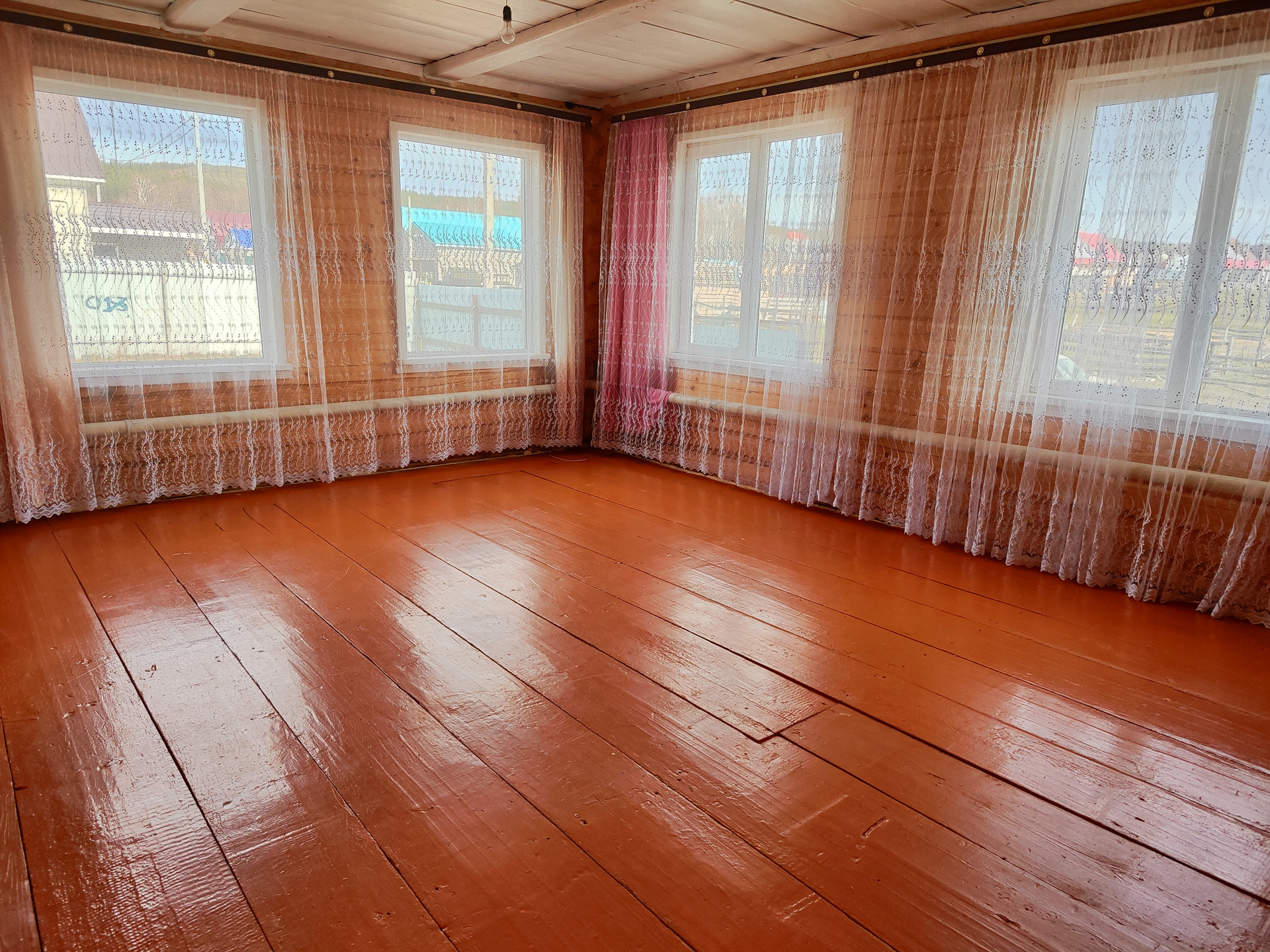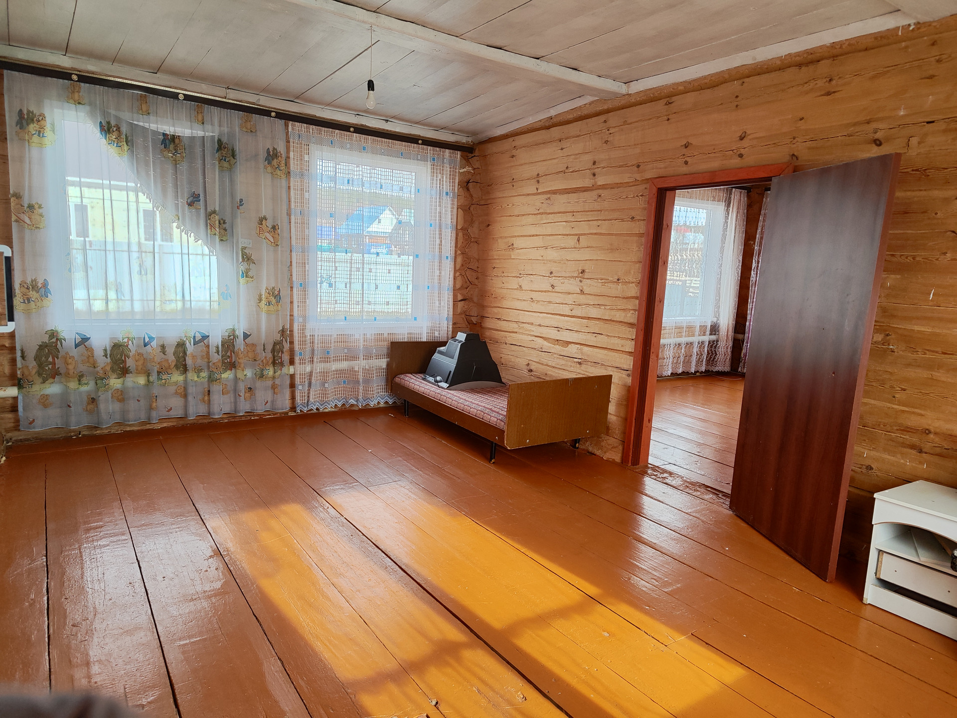 Дом бревенчатый, светлый2017 года постройки, высокий фундамент + пристрой из шлакоблока, установлены пластиковые окна. Большой зал и две большие комнаты. Отопление электрическое, газ проходит по улице. Есть своя скважина. Удобства на улице, есть готовая выгребная яма (септик), при желании можно с/у завести домой.