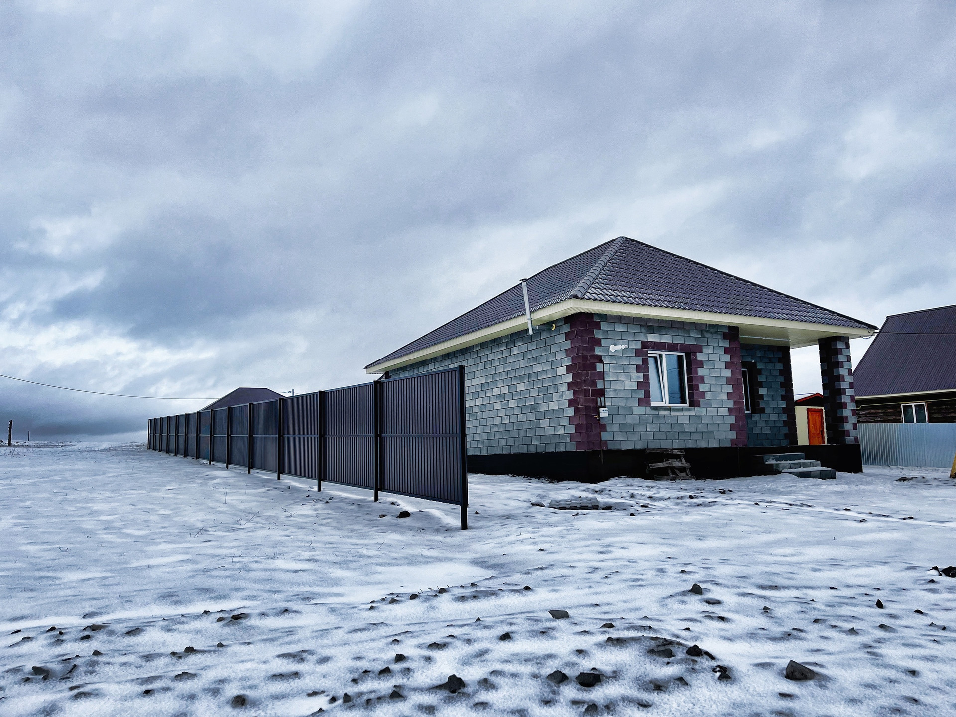 По периметру земельного участка огражден забором из качественного профнастила!