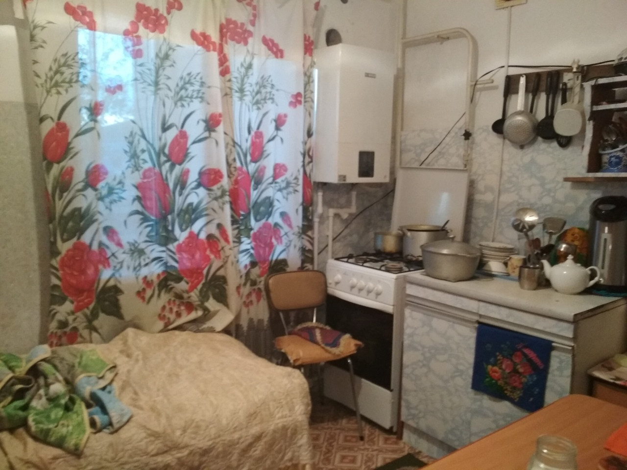 В квартире свежий ремонт, заменены все проводки, установлена качественная входная дверь, межкомнатные двери, новые пластиковые окна и трубы, стены выровнены, проклеяны обои, декоративная штукатурка, на полу линолеум, кафель, по всей квартире натяжные потолки ( высота потолков 3 м). Водогрейка, трубы заменены.