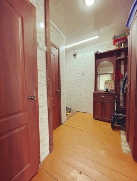 В прихожей стена и потолок общиты ПВХ панелями ,выровнены.