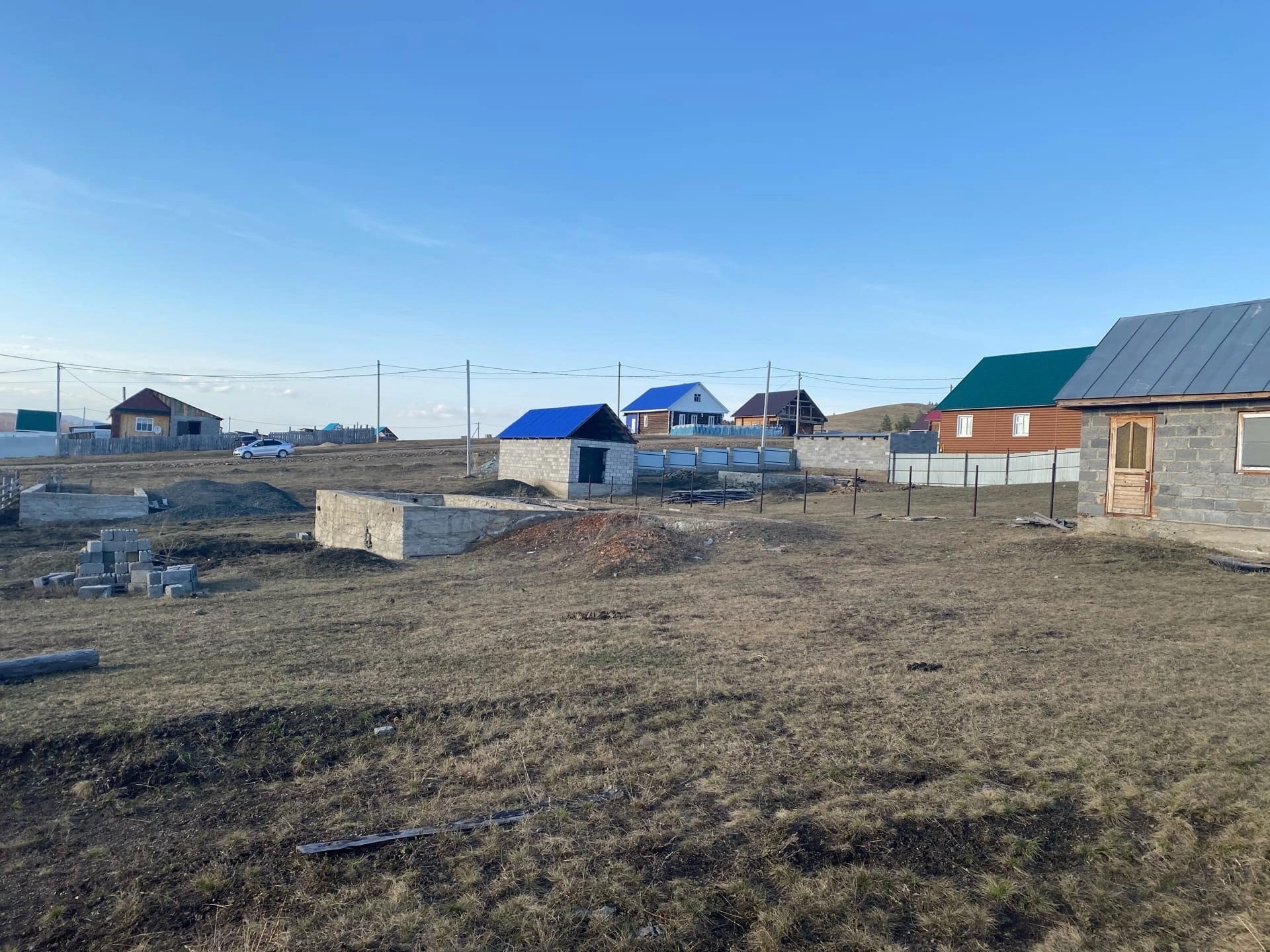 Продается земельный участок с красивым видом  на село, находящийся в с. Аскарово, в микрорайоне Восточном 1 . Рядом расположен хвойный лес. На участке имеются постройки: фундамент под гараж 5 на 11, фундамент под дом 9 на 9 , и есть постройка бани под крышей 3 на 5 из шлакоблока. Так же завезено 11 камазов скалы. По улице проходит газ , свет. Разрешение на строительство имеется. Один собственник.