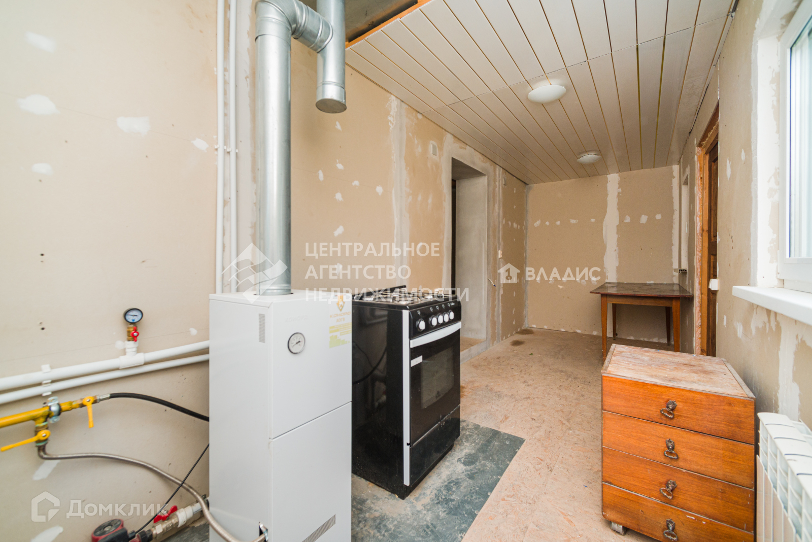 Коммуникации газ, свет, отопление в доме. Установлены радиаторы отопления. Стоит АОГВ. Плита на кухне. Канализация подведена к дому, но не введена  дом. Нужно сделать скважину. Техническая вода подведена к дому.