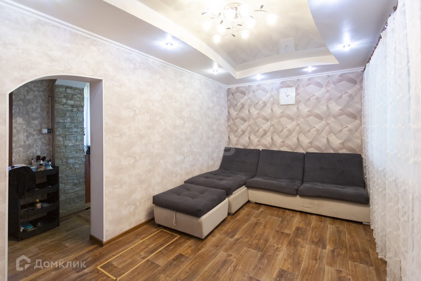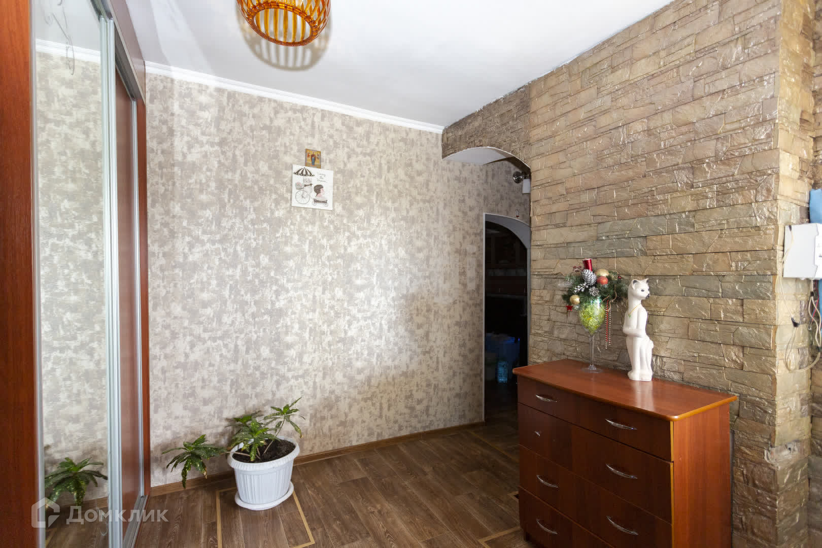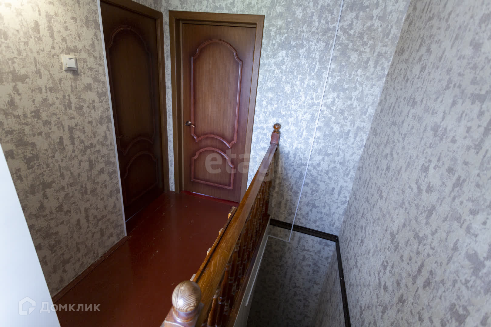 Во всех комнатах натяжные потолки, обои меняли в 2023 году, современные межкомнатные двери из натурального шпона, на первом этаже на полу постелен линолеум, на втором этаже двп. В коридоре стены выложены декоративным камнем.