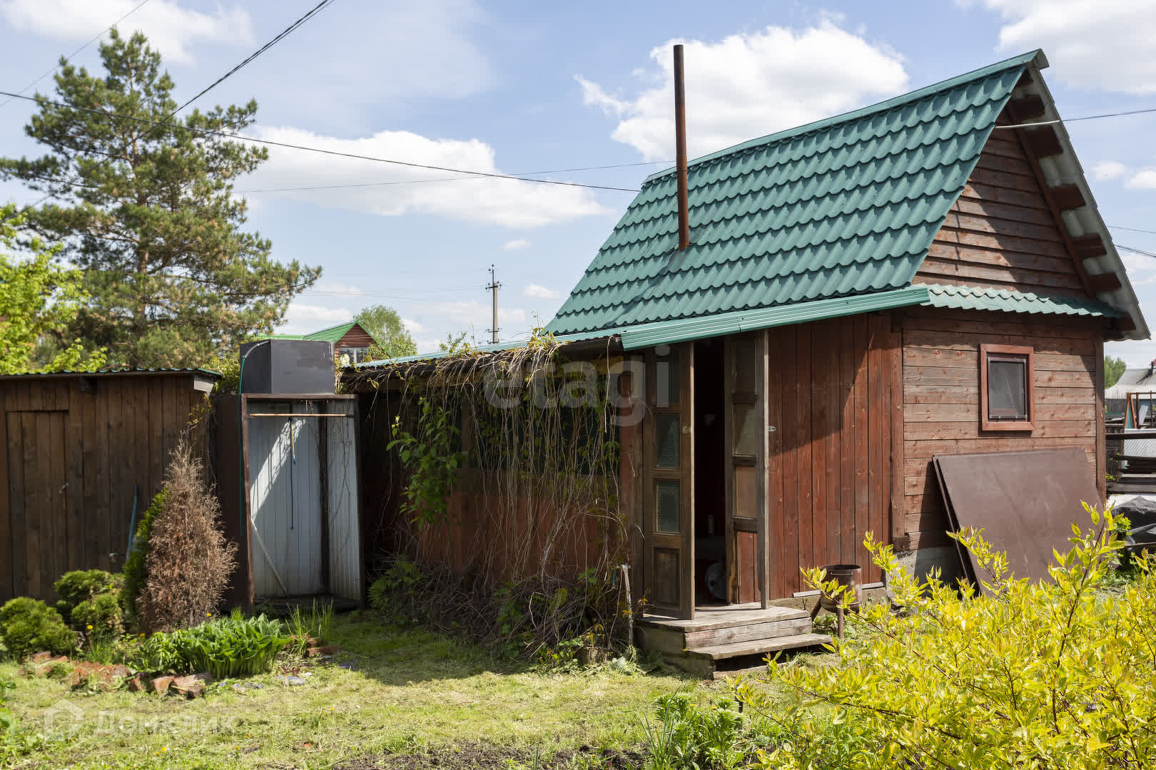 Также продается в собственности земельный участок 4,2 сотки на котором стоит новая баня из сосны с открытой верандой, летний туалет, углярка, хоз.блок.