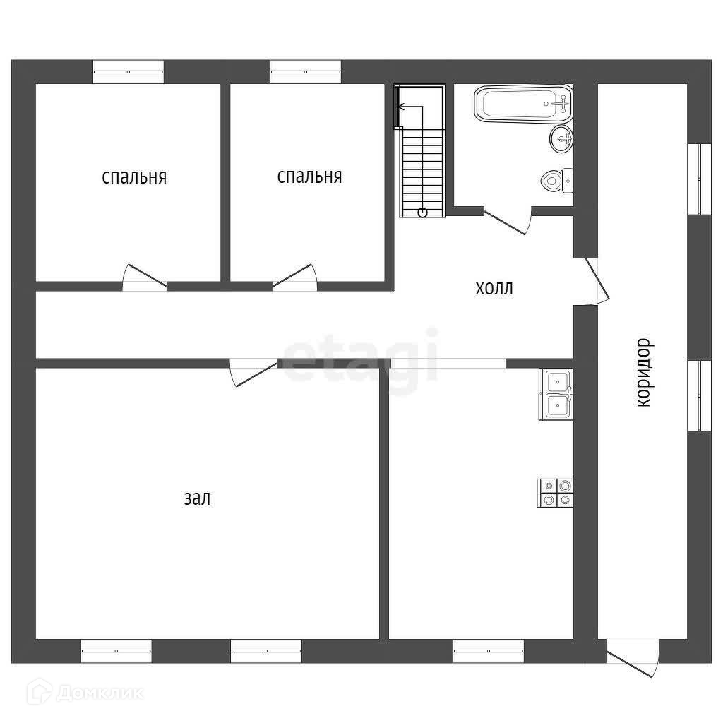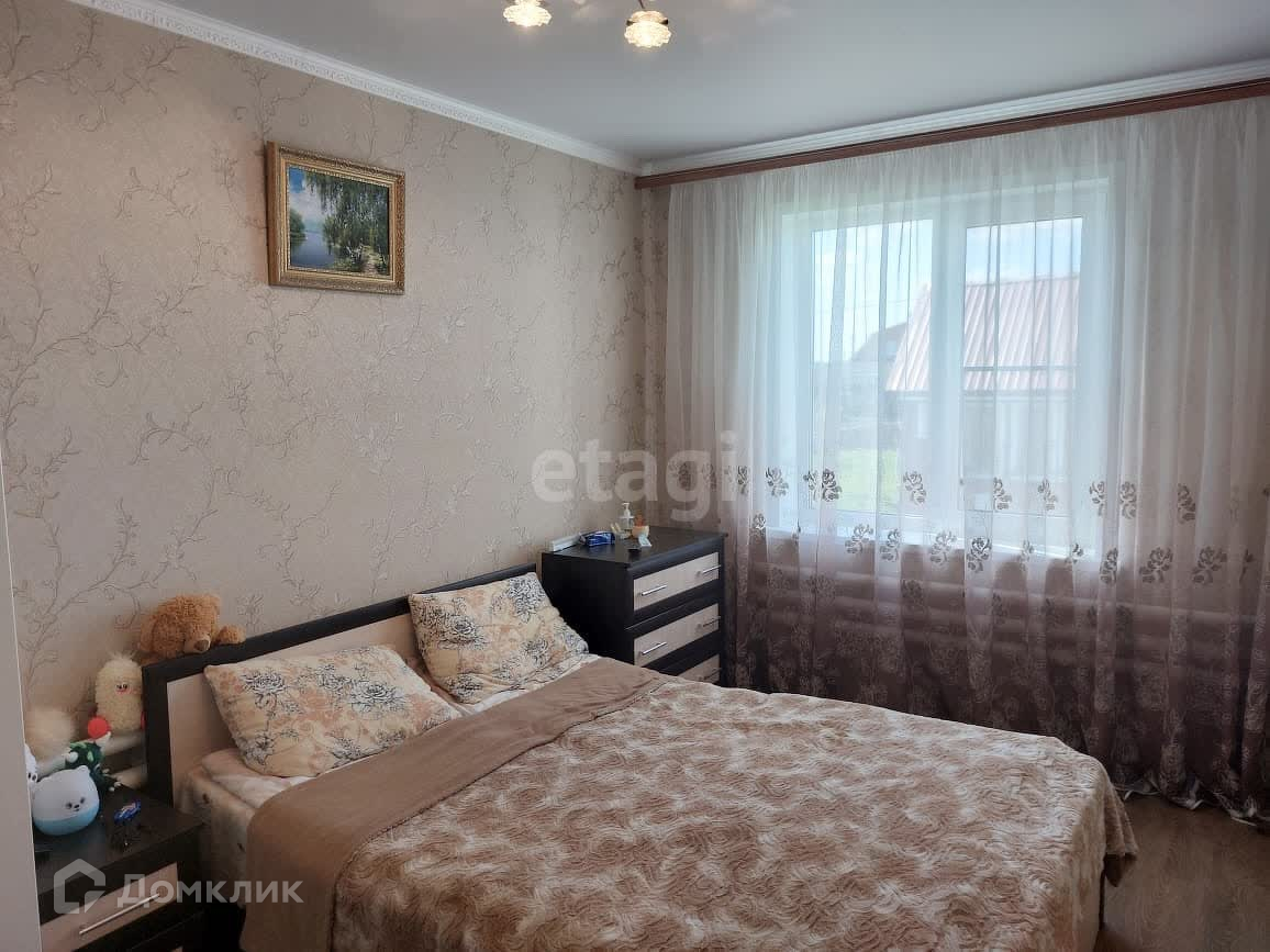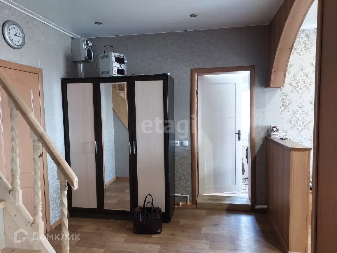 Дом сделан из сруба, обшит сайдингом, пластиковые окна, потолки натяжные, на полу в комнатах ламинат.