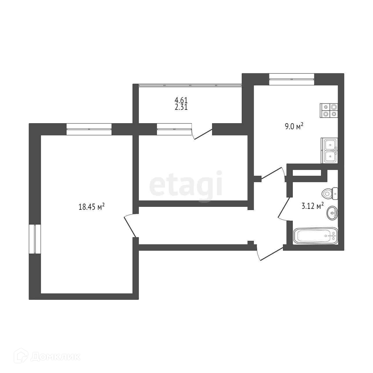 Общая площадь 54 м2
