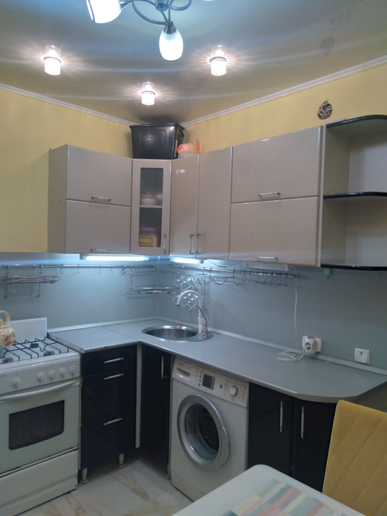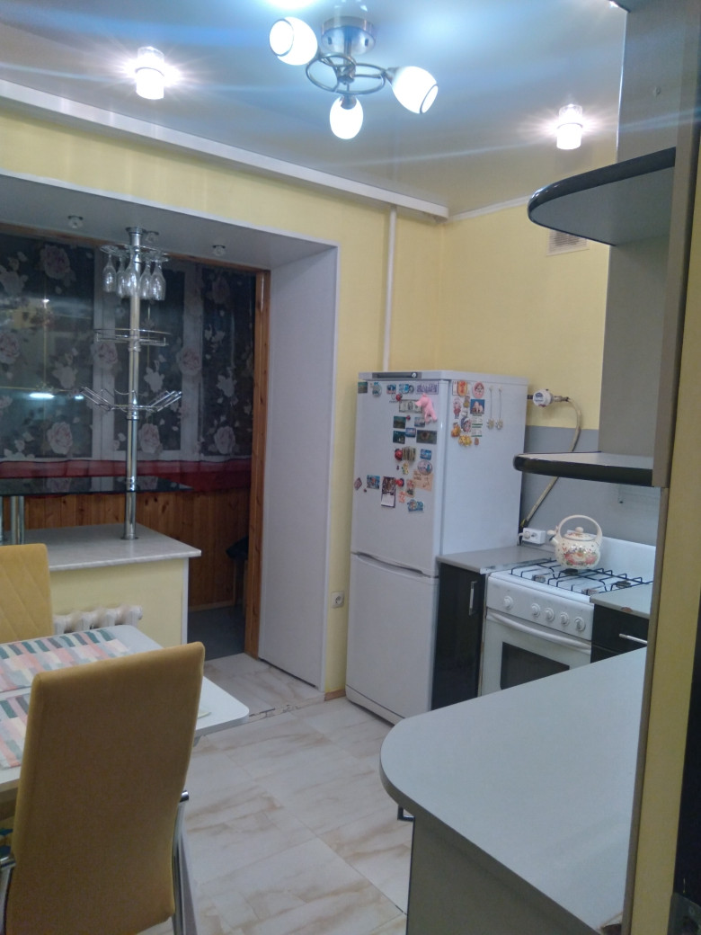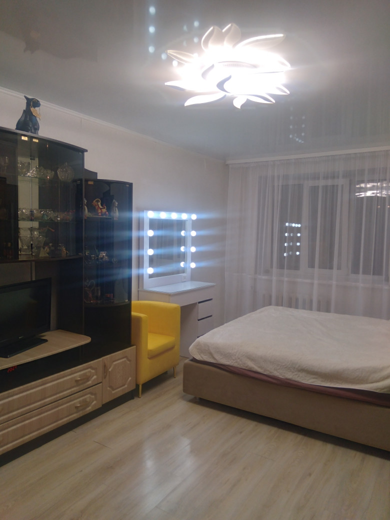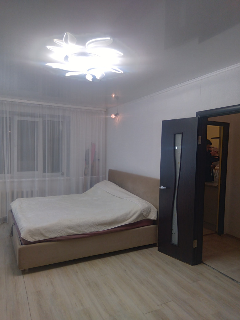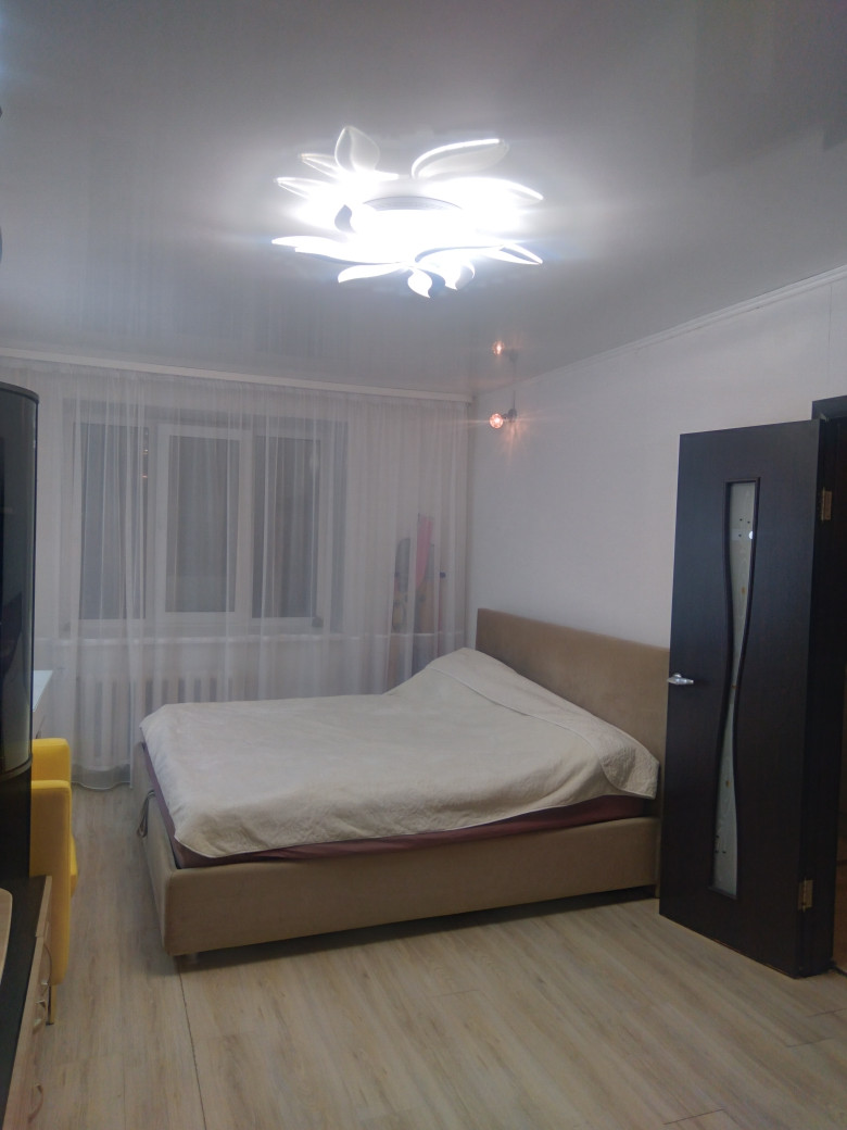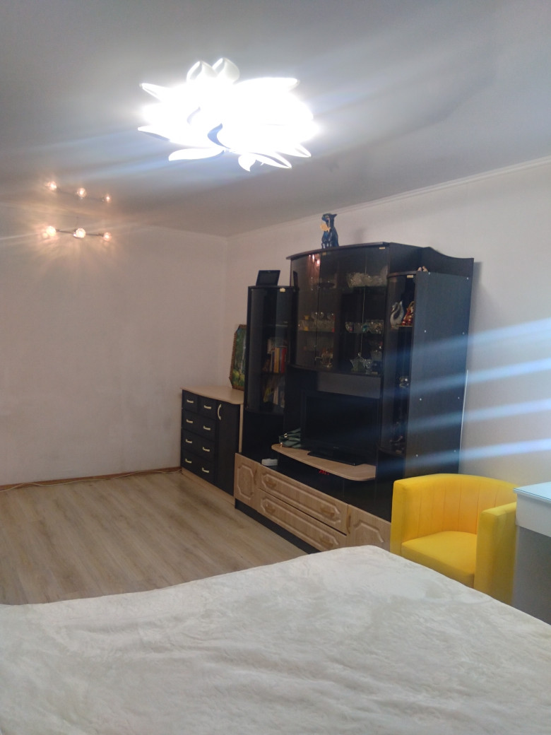 Общая площадь 38 кв.м., комната 18,4 кв.м. Кухня 7,6 кв.м. Санузел совмещенный 4 кв.м Новый дом из красного кирпича. Очень интересная, удобная планировка. Есть большая застекленная лоджия (4 кв.м), с выходом на кухню. Потолки- натяжные с точечными светильниками. На стенах качественные, не броских расцветок обои, на кухне- стены декоративно окрашены. Полы в комнате – паркетная доска, коридор, санузел и лоджия- керамогранит, так же неброского, приятного окраса. На лоджии полы с электроподогревом. Лоджия совмещена с кухней, что дает глазу еще больше пространства. На окнах- качественные стеклопакеты. Европакеты на лоджии с дизайнерскими вставками. Квартира теплая, светлая, просторная. Игровая и Спортивная площадки во дворе. В доме есть «Академия Лидера» для детей школьного возраста и ясли, для малышей. Вокруг дома имеется несколько просторных парковочных мест. Очень хорошие и дружные соседи. (Живем, как одна семья). Магазины, школа, садики, поликлиника, аптеки в шаговой доступности. Идеальный вариант, как для молодой семьи с детьми, так и для людей преклонного возраста. Рассмотрим любые варианты. Звоните! Все варианты решаемы.