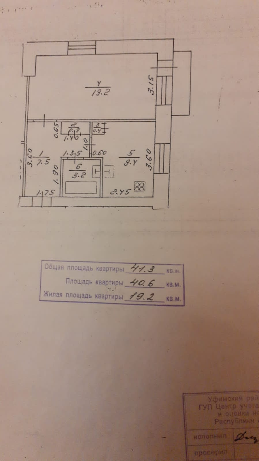 Общая площадь 40.6 м2