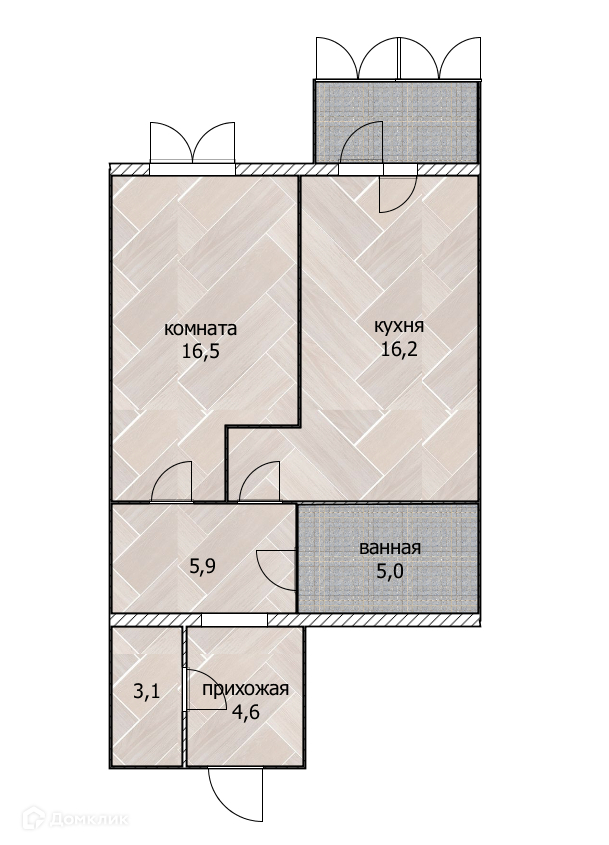 Жилая площадь 16.5 м2
