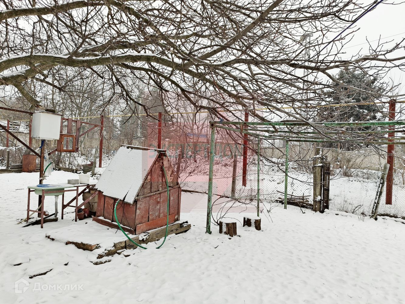 На участке хоз. постройки, колодец, сливная яма, летний туалет. Посажены фруктовые деревья, виноград, множество розовых кустов.