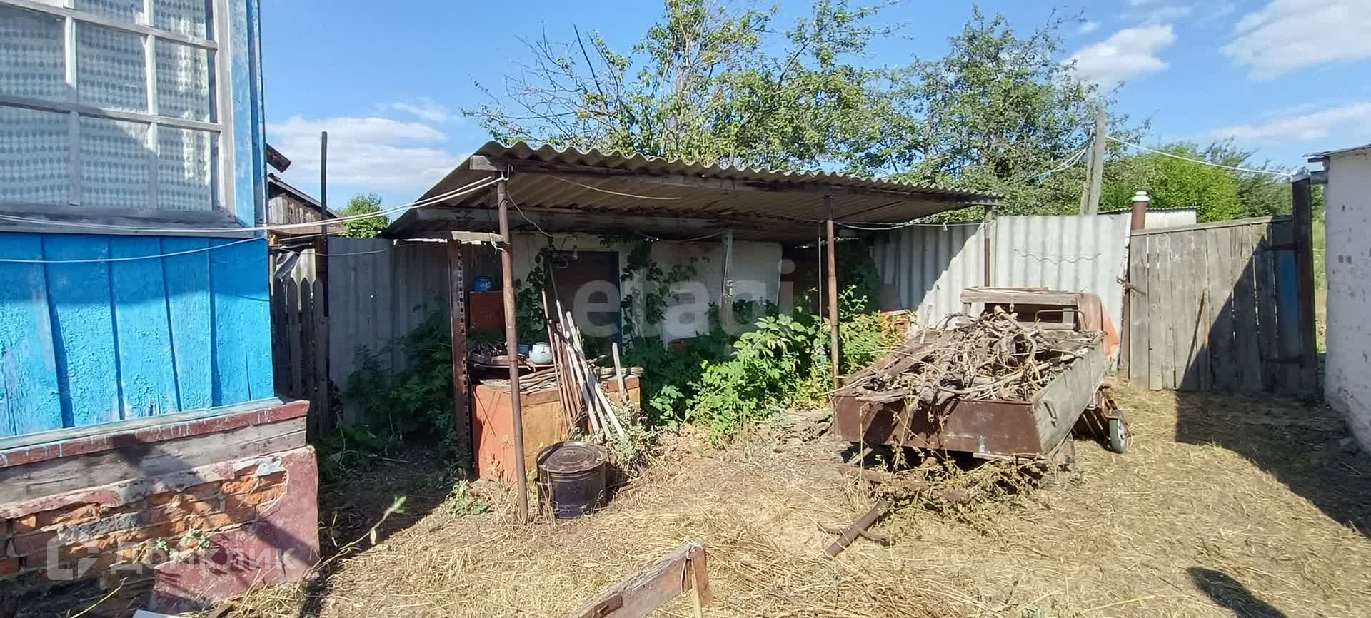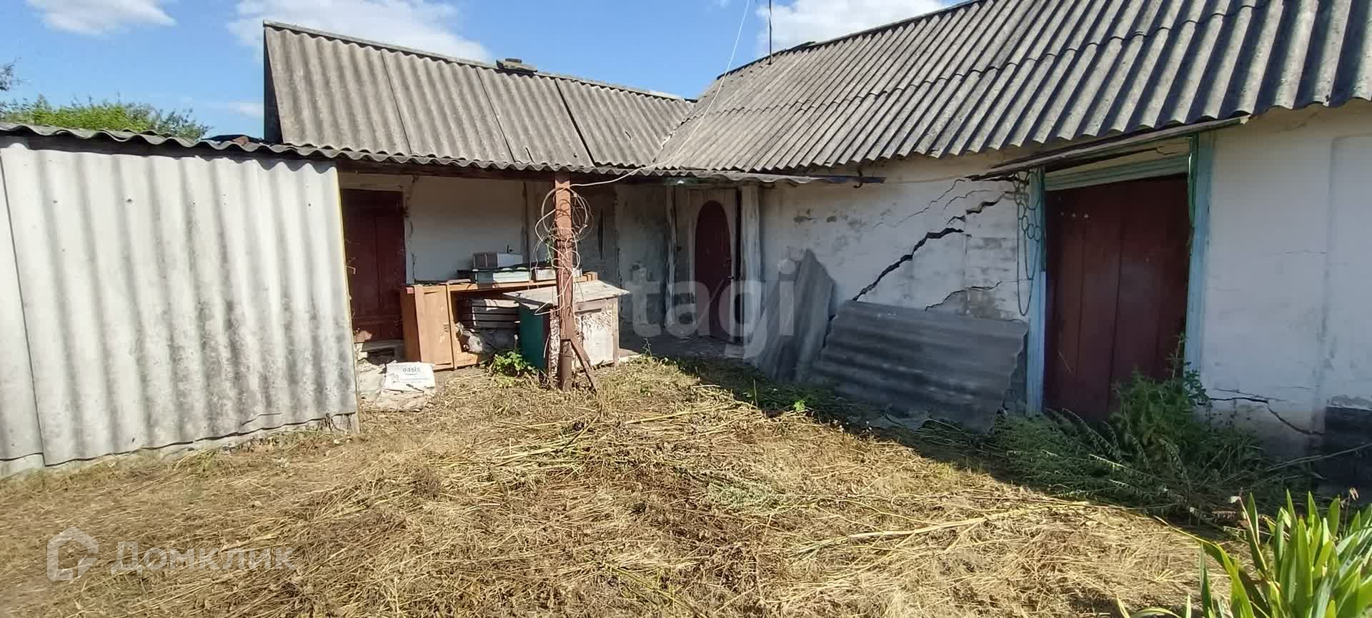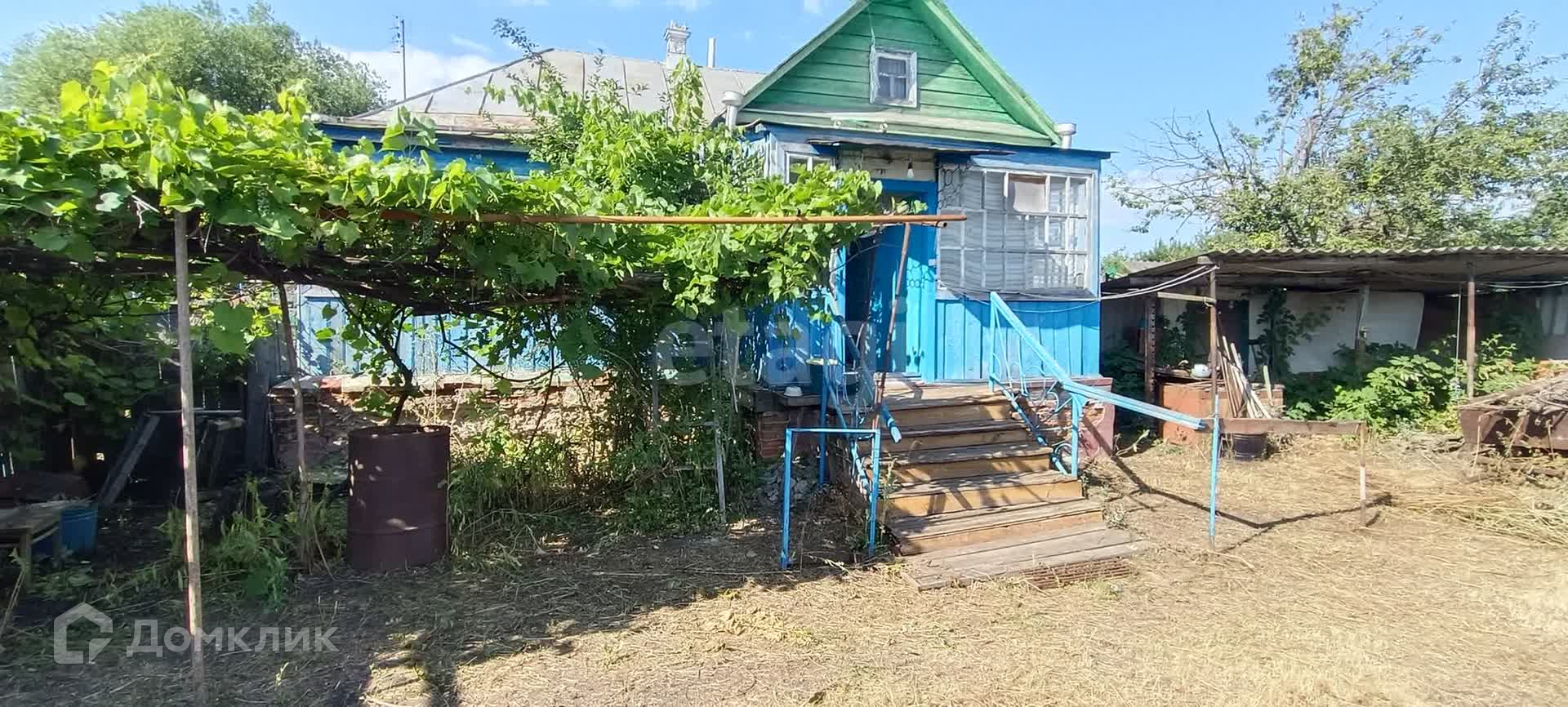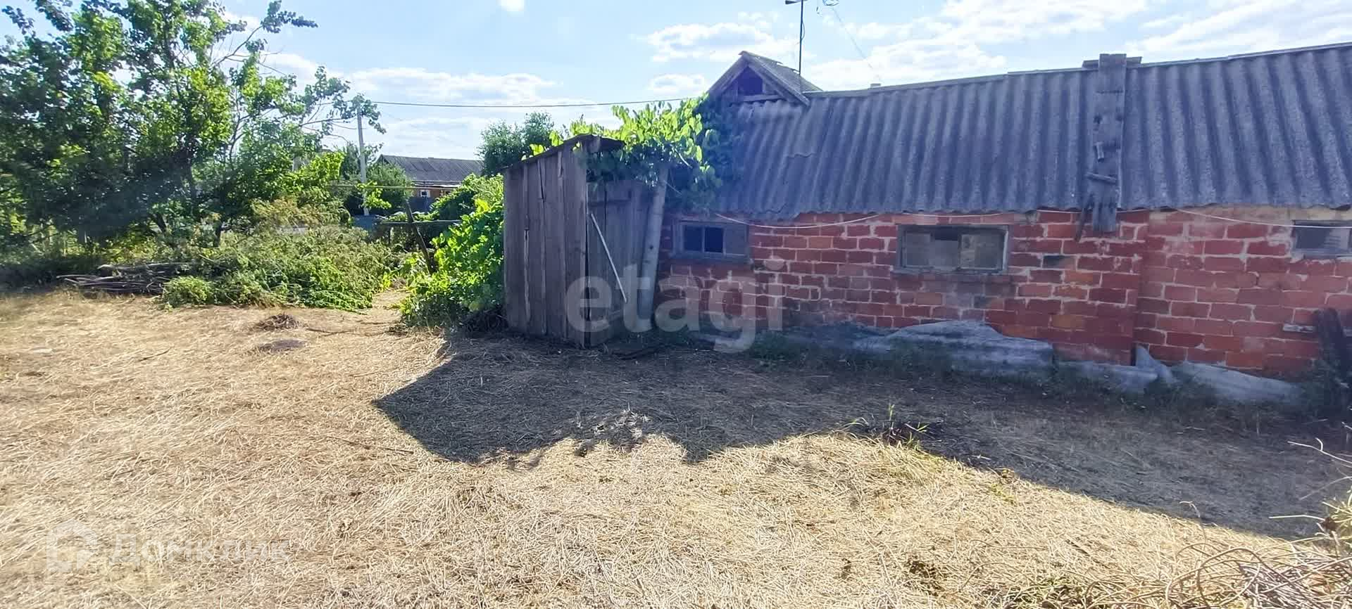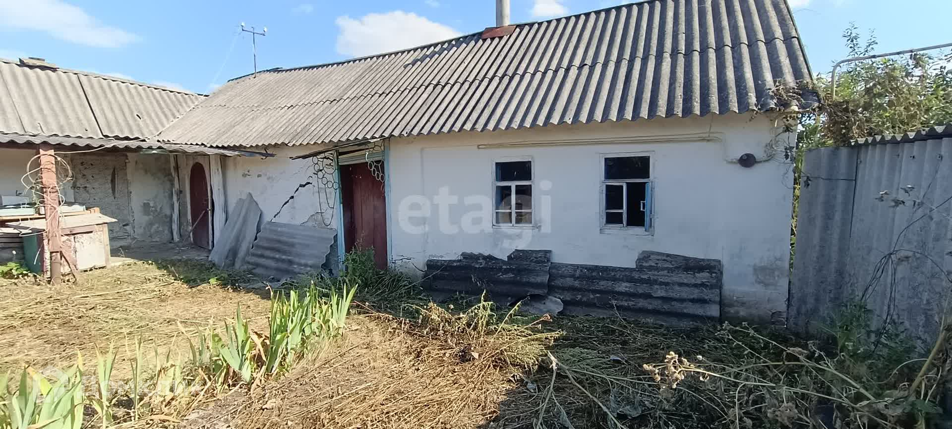 Во дворе есть постройки: сараи, времянка, подвал. Во времянку проведён газ и вода. Отапливается дровяной Русской печкой (смотри фото). Участок ровный, но не обработан. Есть фруктовые деревья. Так же много лозы плодоносящего винограда.