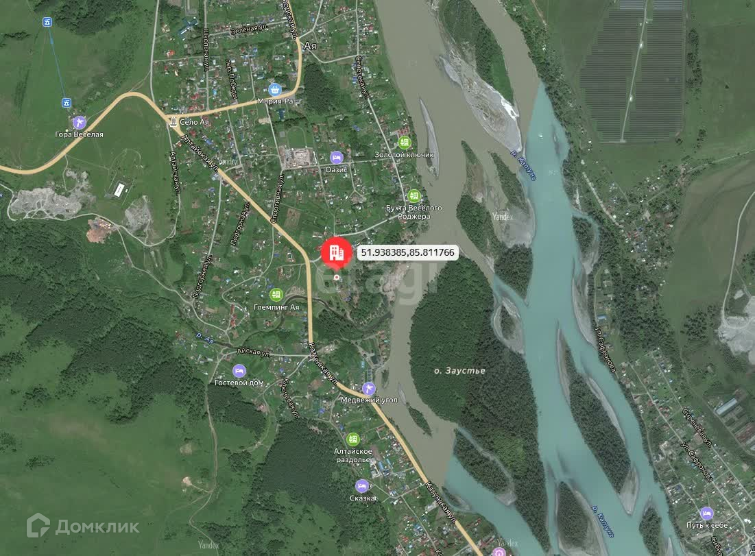 Базы отдыха с бассейнами и озеро Ая в 800 м. от участка. Горный Алтай, всесезонный курорт Манжерок находятся рядом. До центра города 9 км.
