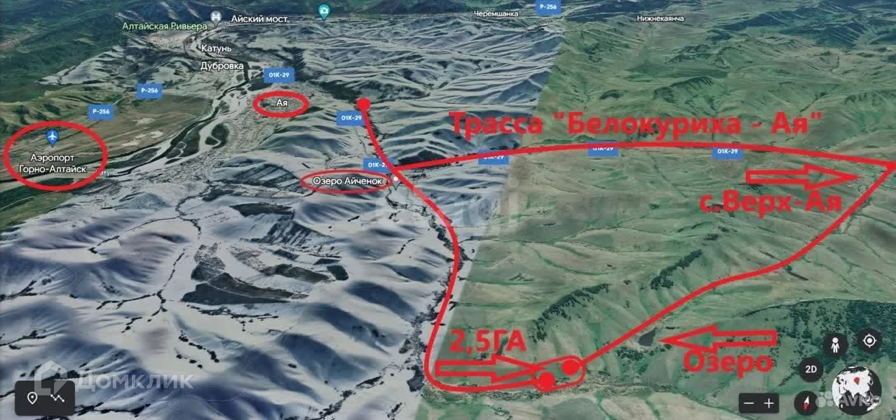 Участок находятся в 5 км. от с. Ая и в 3 км. от трассы Белокуриха - Ая.