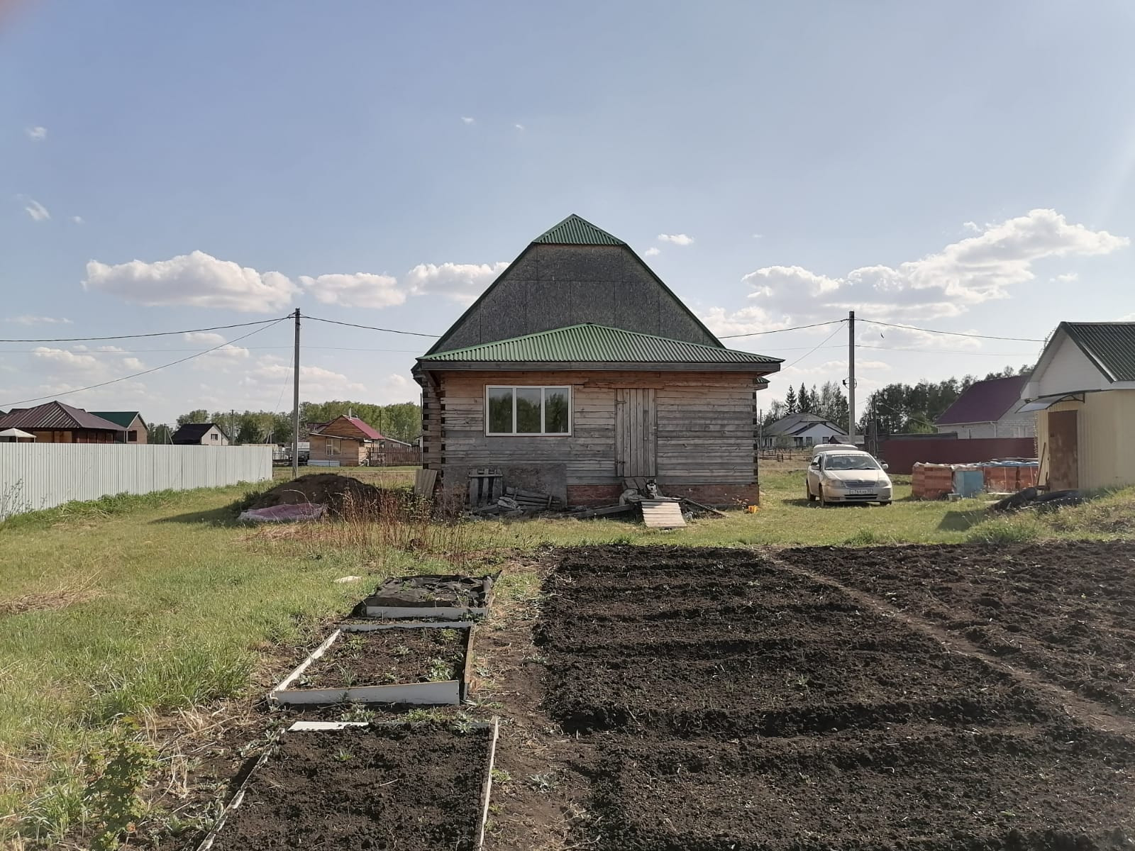 На участке плодородная земля. Посажены яблони, смородина, малина, крыжовник.