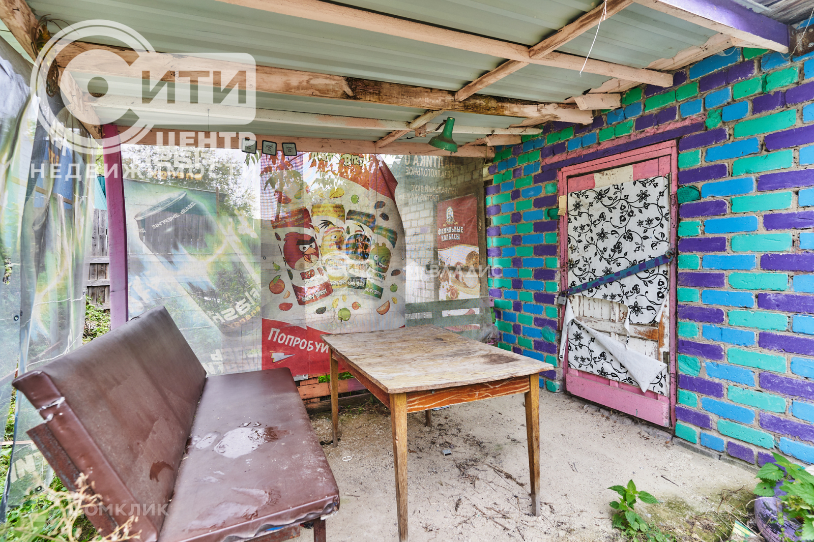 Напротив есть кладовка с навесом и столиком,