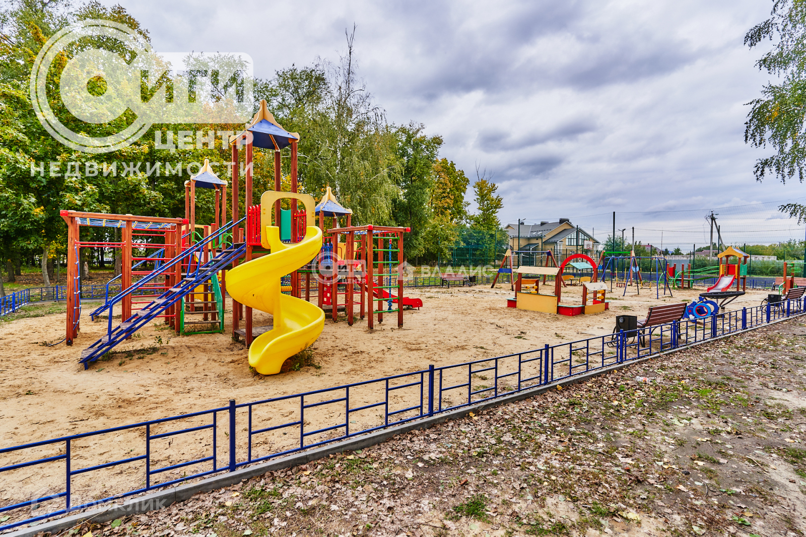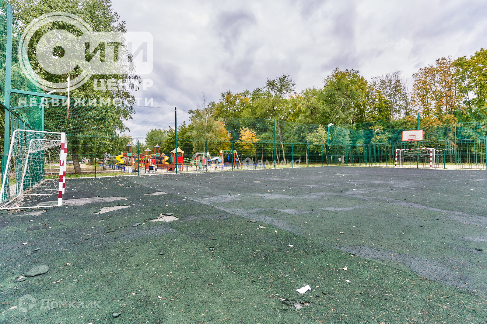 -большая детская площадка и футбольное поле