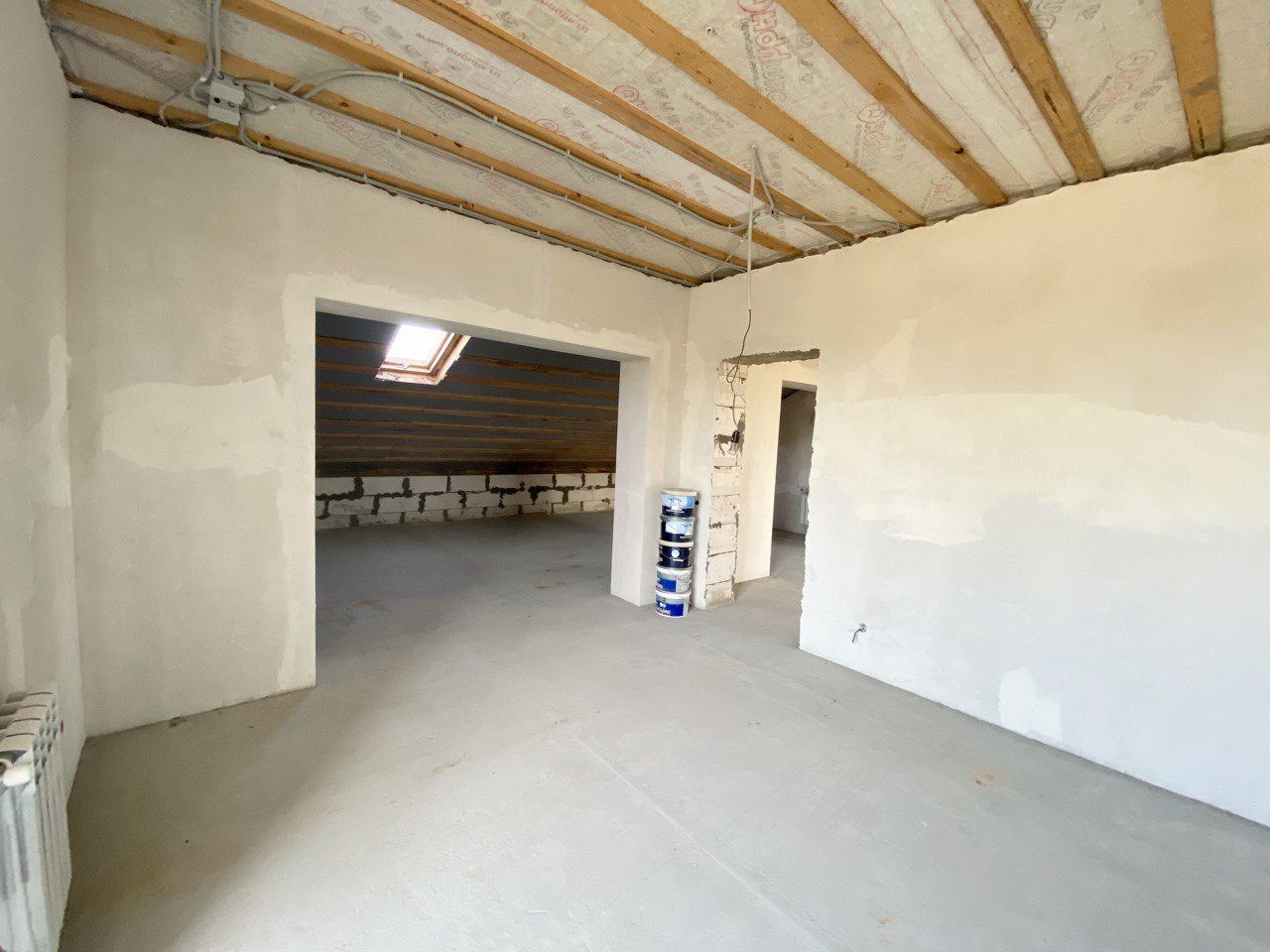 В доме произведён ремонт на 1 этаже, ламинат, обои, потолки, санузел, кухонный гарнитур. На втором этаже, стяжка, штукатурка, проводка, сантехника, в дальнейшем также будет продолжаться чистовой ремонт (в стоимость не входит)