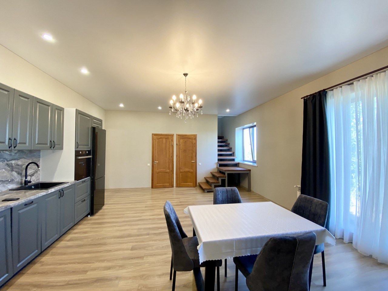 Земля и дом в собственности, все коммуникации подключены, свет, газ, центральная вода. Автоматические гаражные ворота, дорогой оконный профиль антивандальный, тёплый водяной пол, двухконтурный котёл, два санузла, высокие потолки, два балкона с панорамными окнами на две стороны.