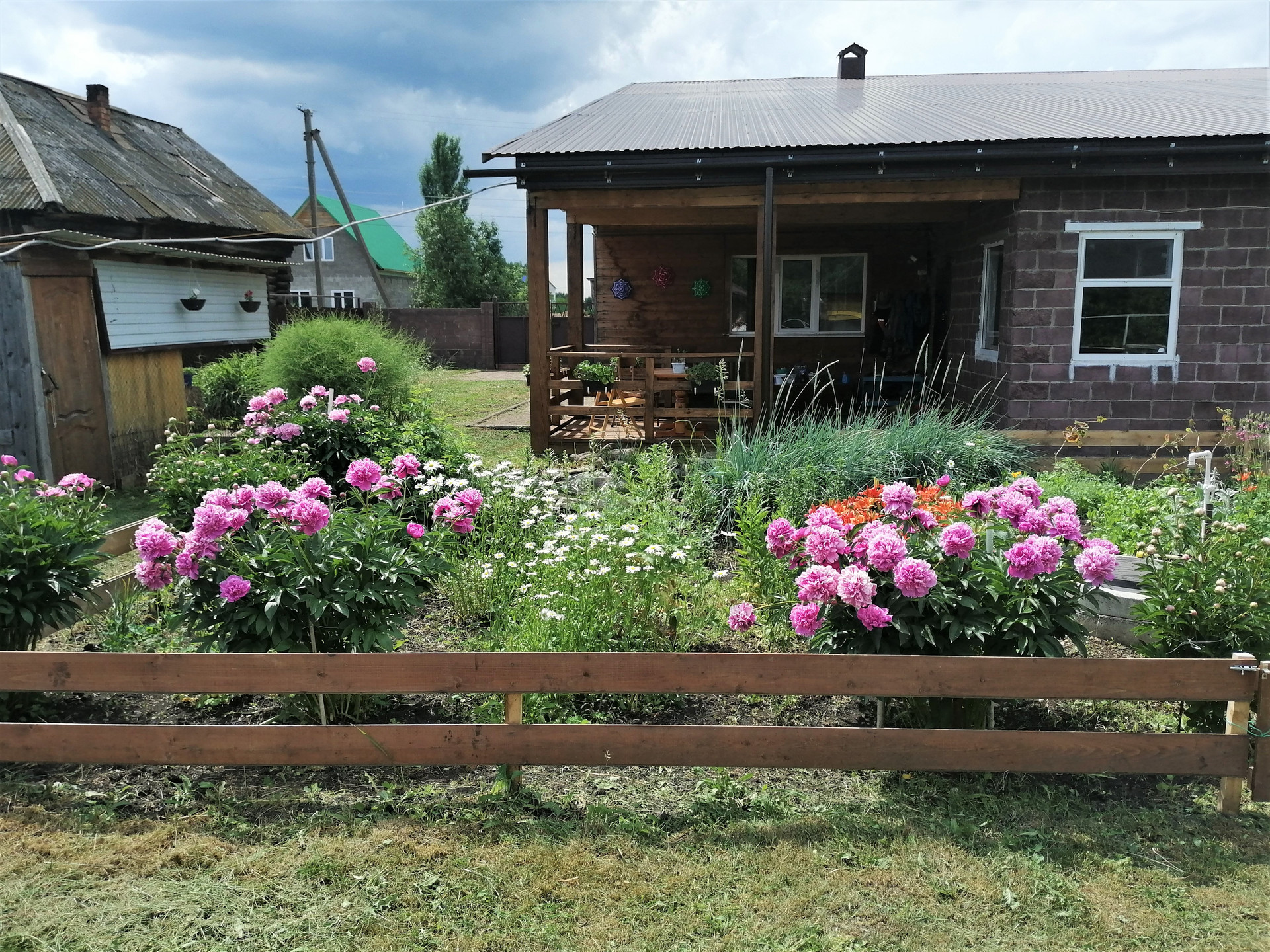 Теплый курятник из полноценного сруба. Небольшая благоустроенная терраса с прудом.