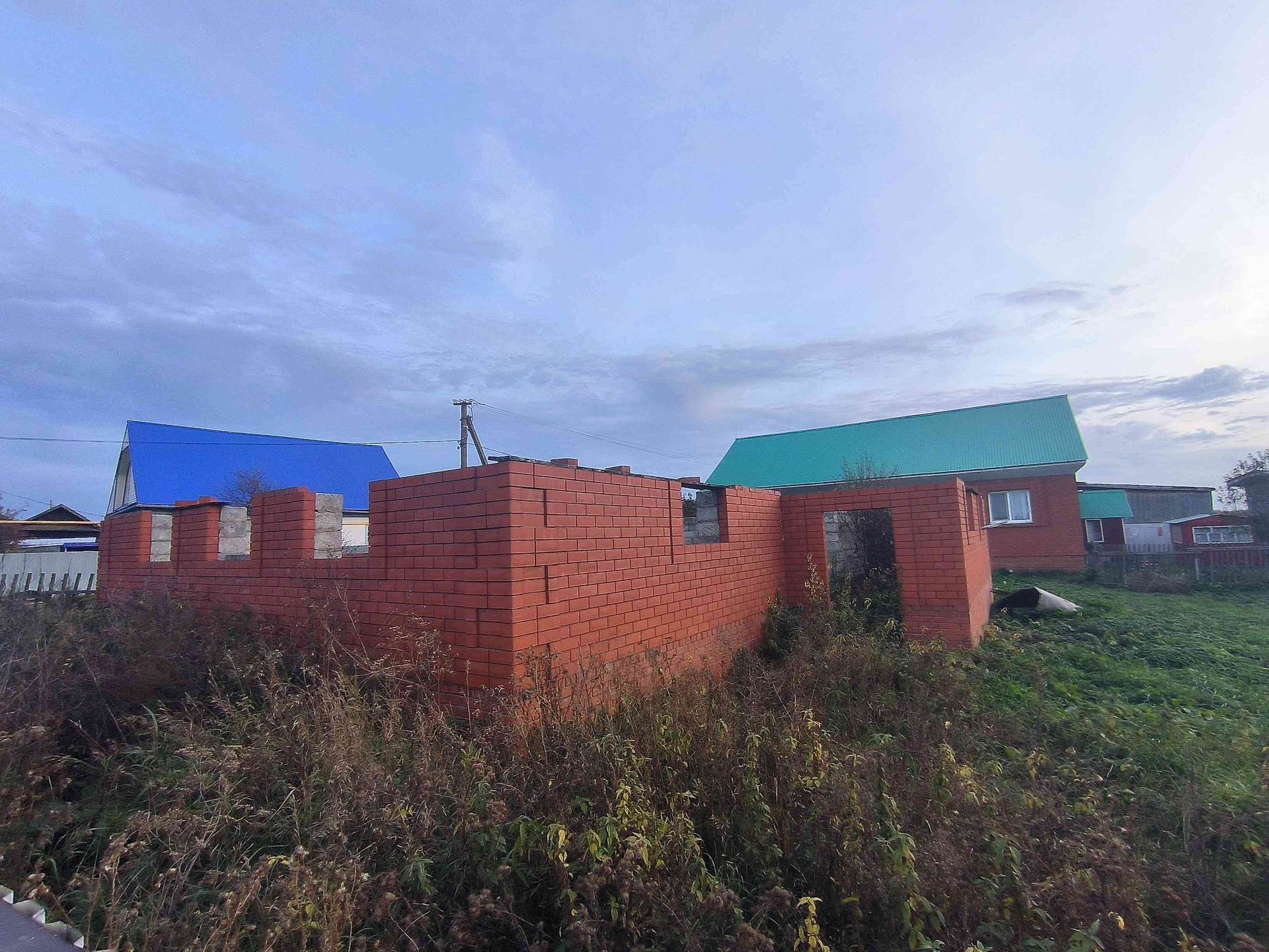 На участке имеется фундамент и стройматериалы для завершения строительства до крыши.