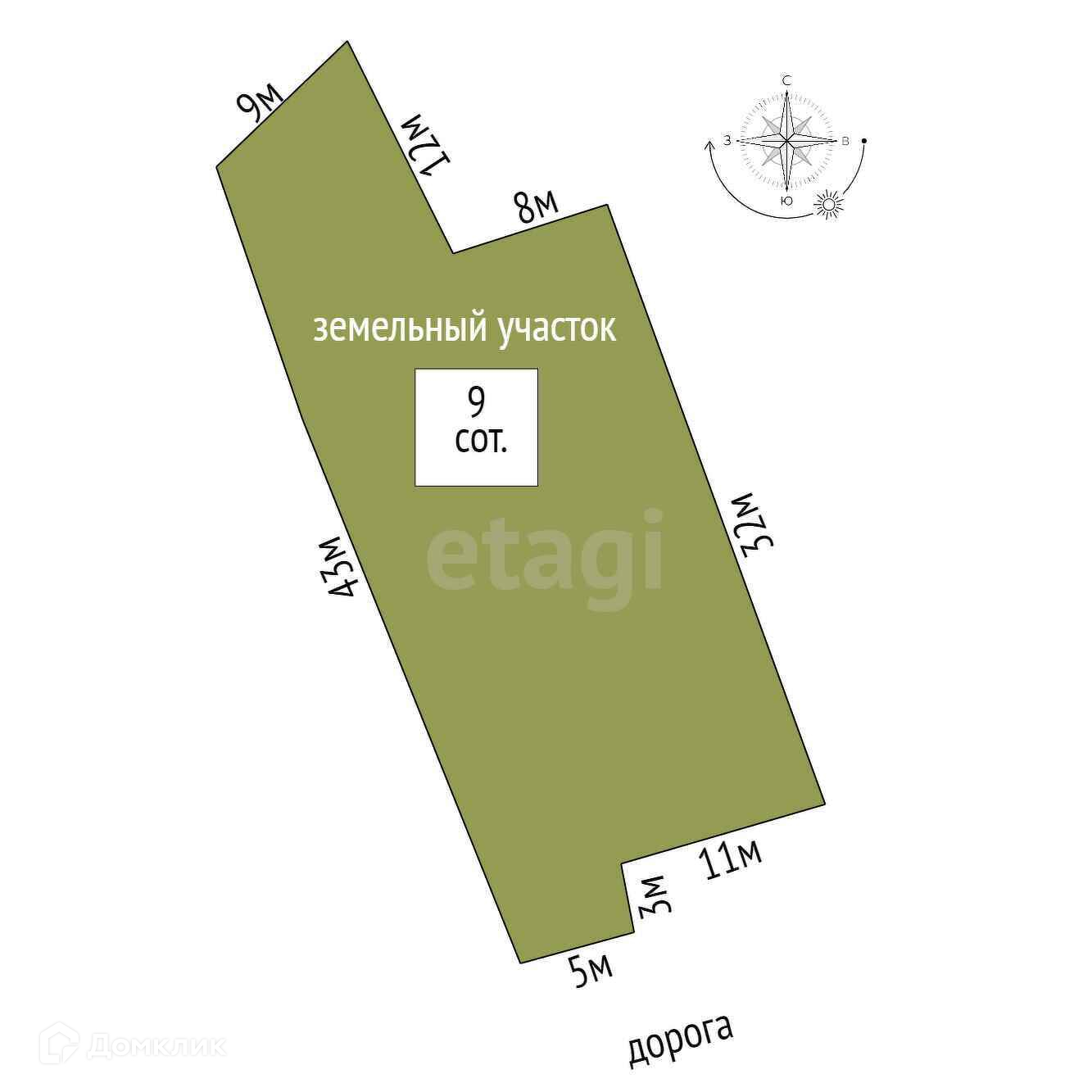 Площадь участка 9 сот.