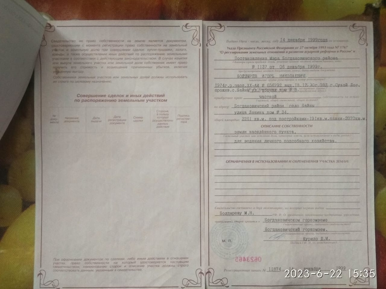 Площадь участка 22 сот.