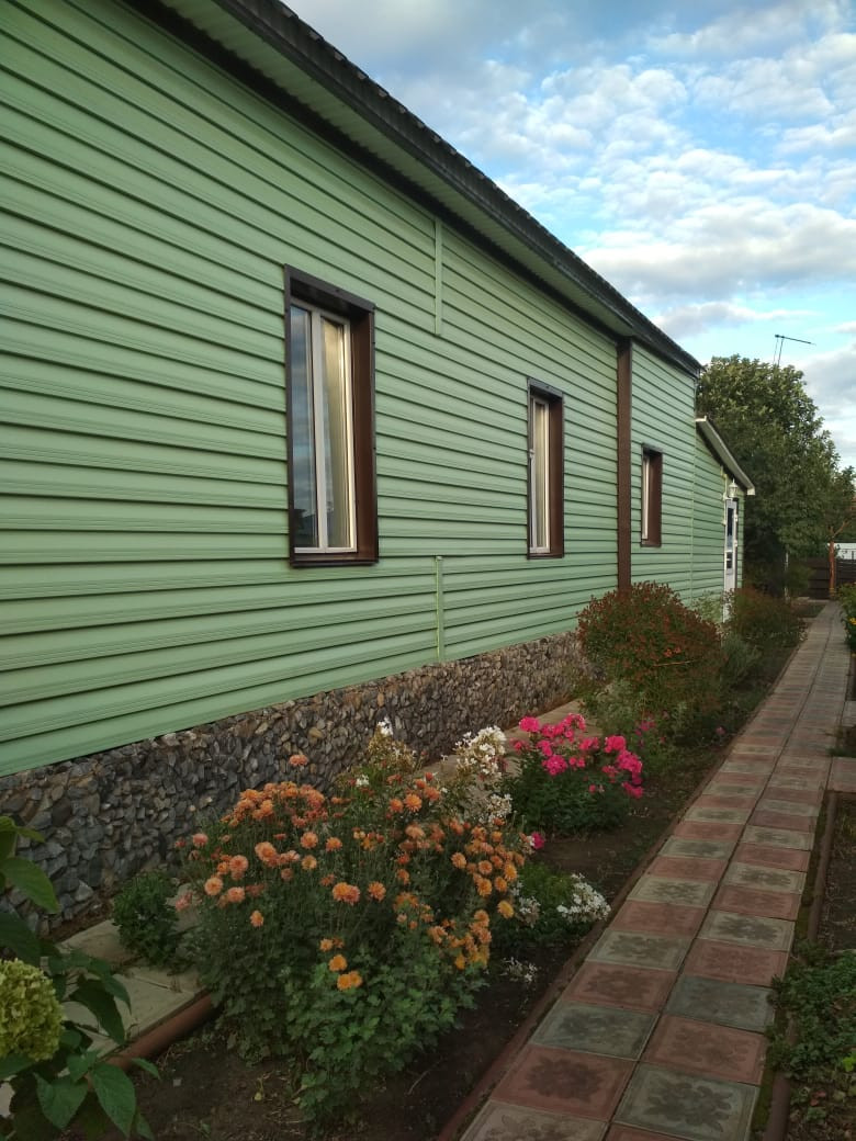 В доме сделан хороший ремонт, остаётся мебель: кухонный гарнитур, 3 дивана, 2 кресла, кухонный уголок и стол, стулья, стол складной, шкаф купэ, косметический столик, тумбочки.На участке есть гараж, подвал, баня на дровах, душевая, туалет, большой сарай с сеновалом, теплица, а также зона отдыха с беседкой, качелями и печкой для приготовления еды. Имеется отдельный огород для выращивания картофеля, ухоженный фруктовый сад, шикарный цветник. Есть большая ёмкость для воды. Водопровод летний, в сезон работает без перебоев. Участок огорожен забором из профлиста, имеются ворота и парковочное место для автомобиля.