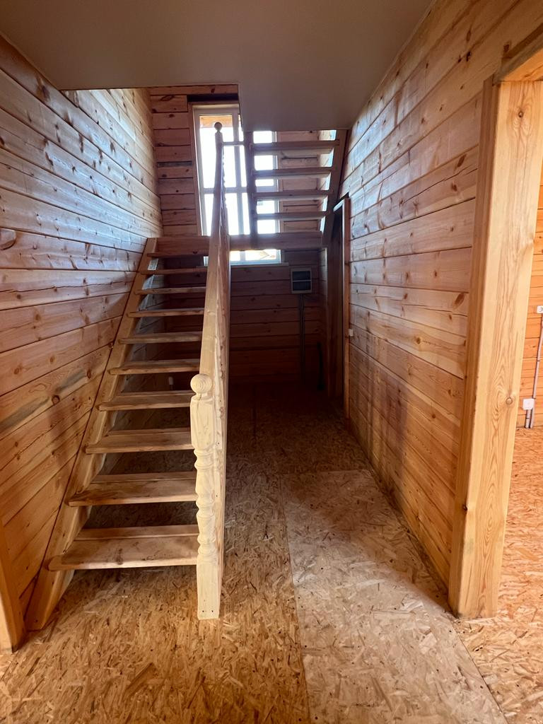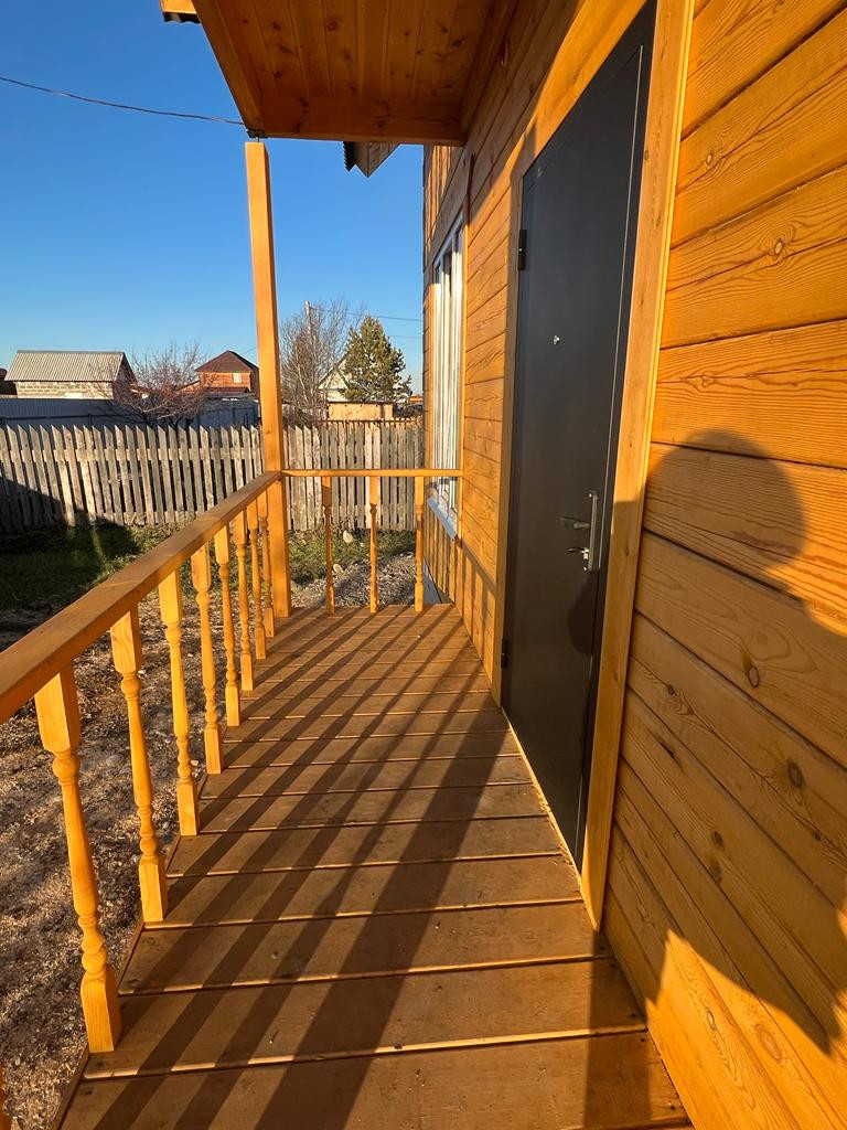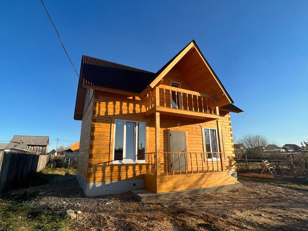 Продаю качественный, современный, стильный дом с панорамными окнами , 2 этажа. Балкон для хороших посиделок. Построен из экологического строганного с двух сторон зимнего бруса 180/180. Везде заложен утеплитель 3 слоя. Первый этаж: гостиная, ванная комната, кухня. Второй этаж: две большие спальные комнаты, место под гардеробную, выход на балкон. Натяжные потолки. На участке растут яблоки, сливы, смородина, клубника.