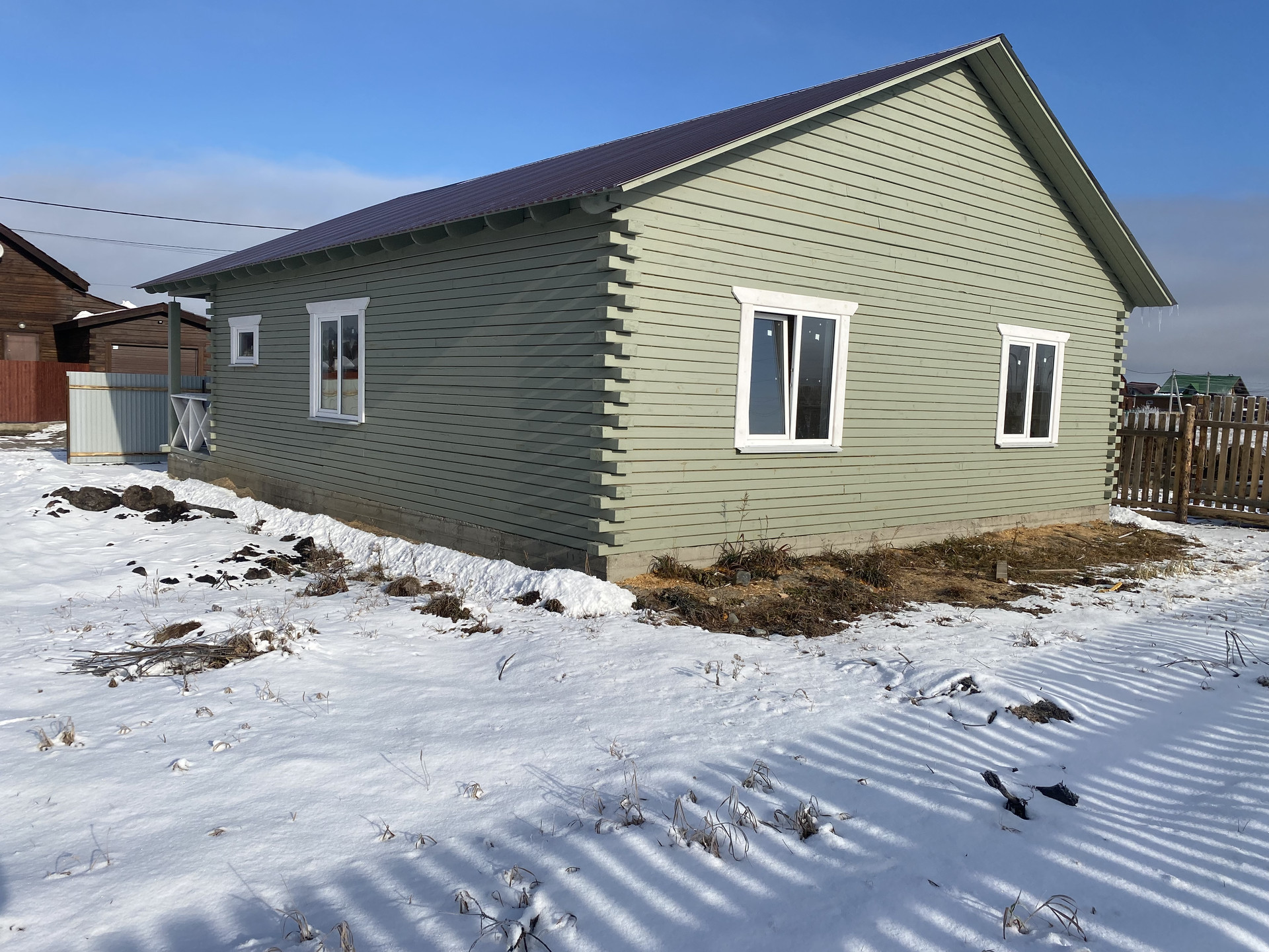 Дом расположен на ровном земельном участке, правильной прямоугольной формы, площадью 580 кв.м. Хорошее местоположение, в шаговой доступности магазины, автобусная остановка, школа, детский сад. До г. Шелехов менее 1 км. Участок не находится в зоне затопления, ничем не обременен. Категория земель-земли населенных пунктов. Вид разрешённого использования-для индивидуального жилищного строительства. Документы готовы к продаже. Один собственник.