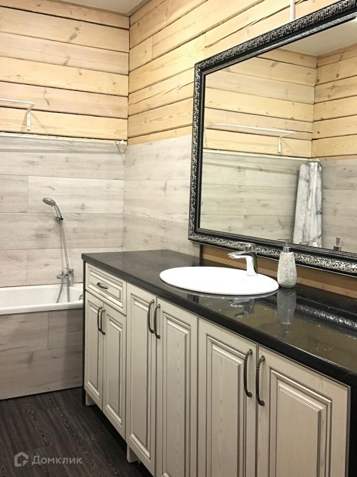 В ванной комнате на полу - плитка ПВХ
