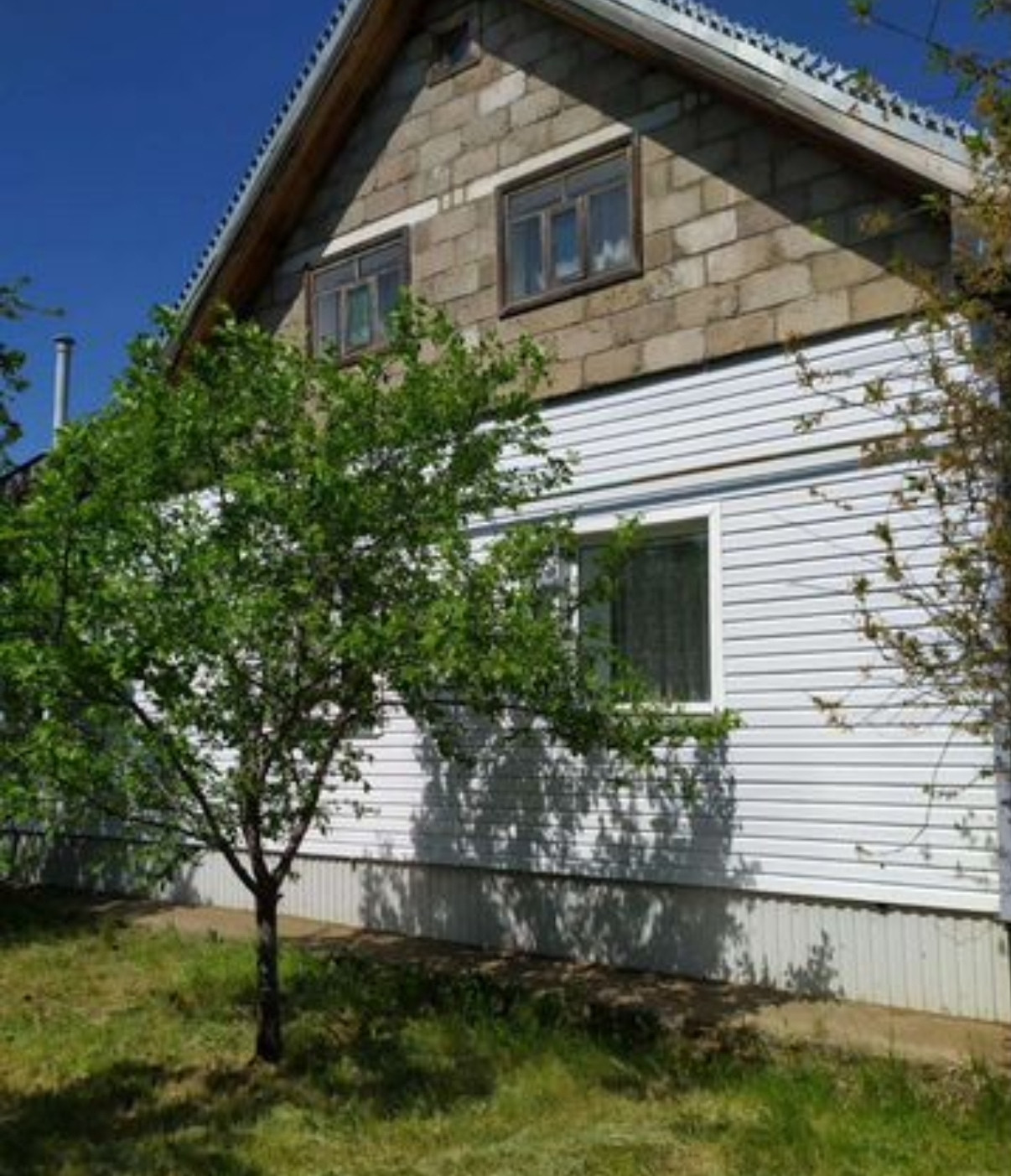 Дом. Двух этажный, керамзитные блоки , утеплен, минерпльная вата, обшит сайдингом,Пластиковые она, ремонт сделан, 1этаж-столовая, две комнаты, спн узел,, 2- этаж две комнаты. Баня, сарай, отдельные постройки. Газ, отопление, септик. Своя скважина воды. Наслаждения, теплица. До города. 10 км Красивая природа. Торг уместен.