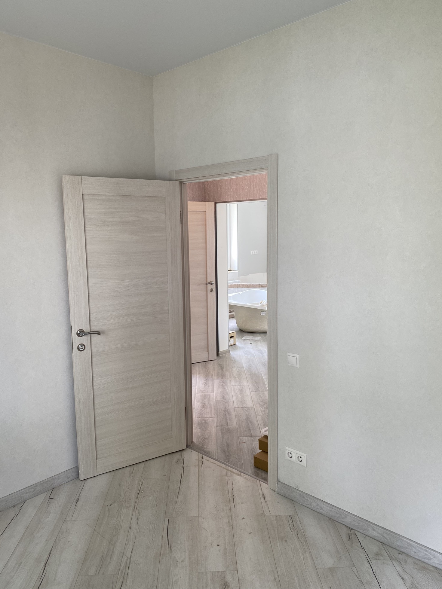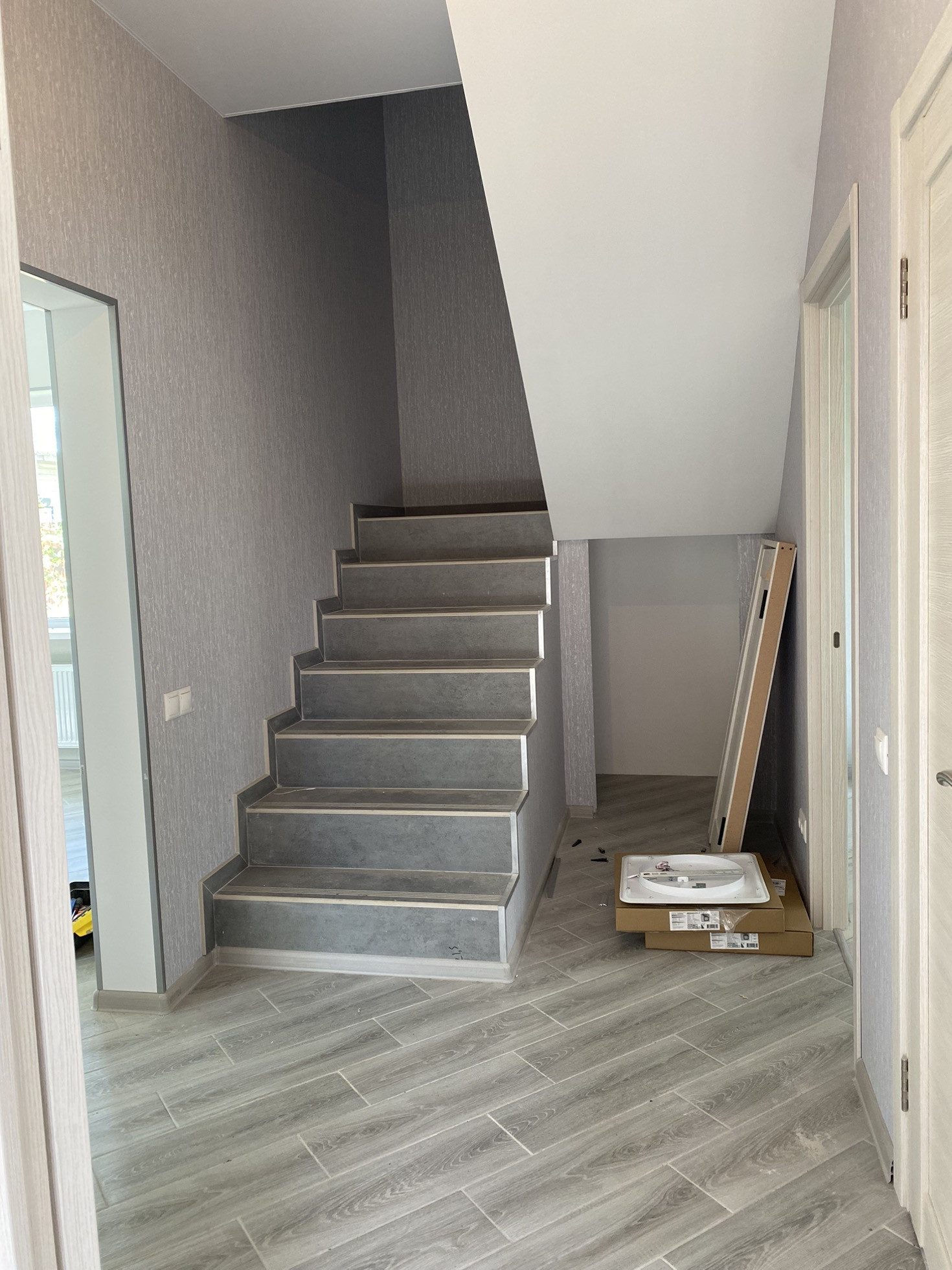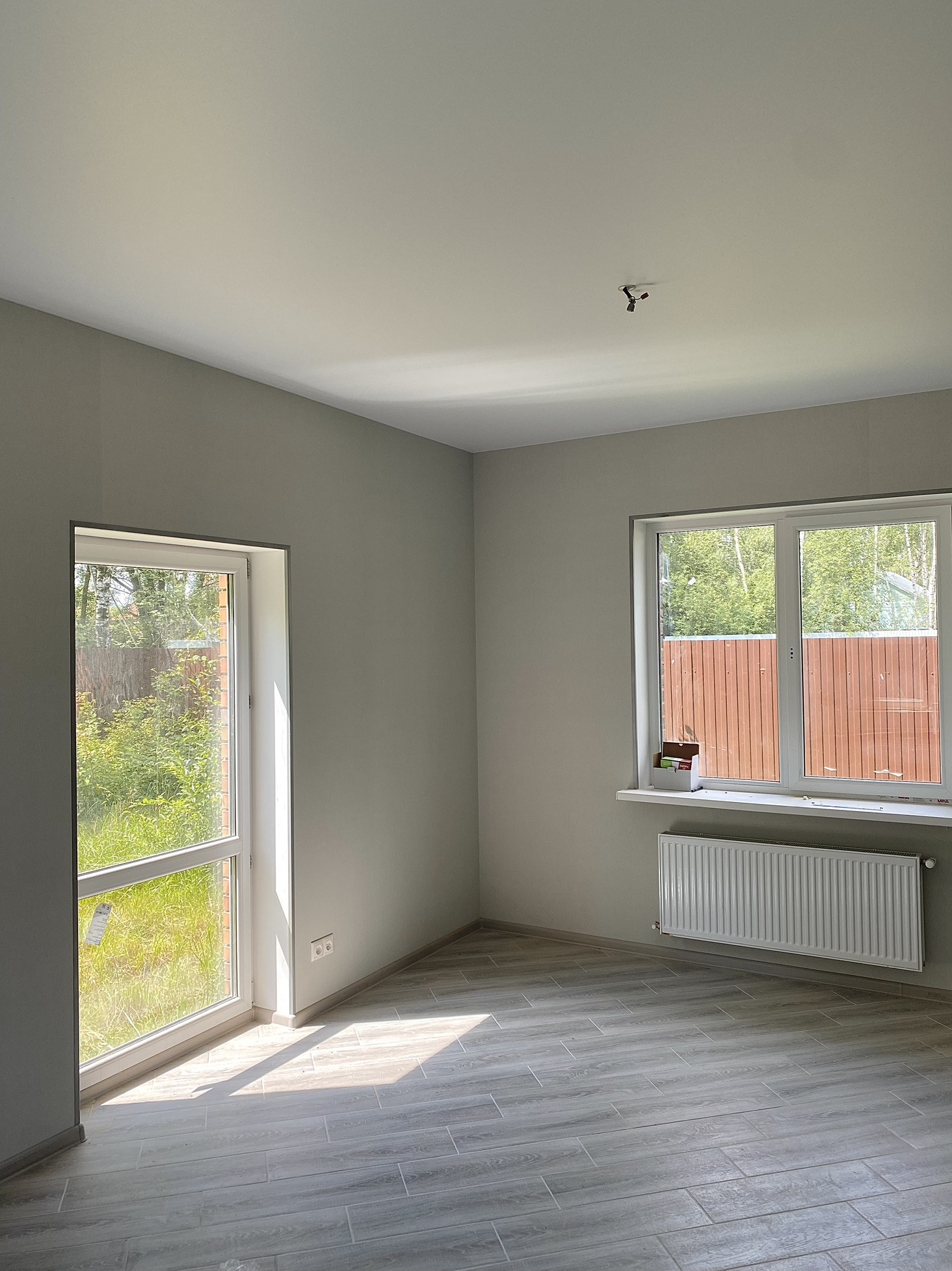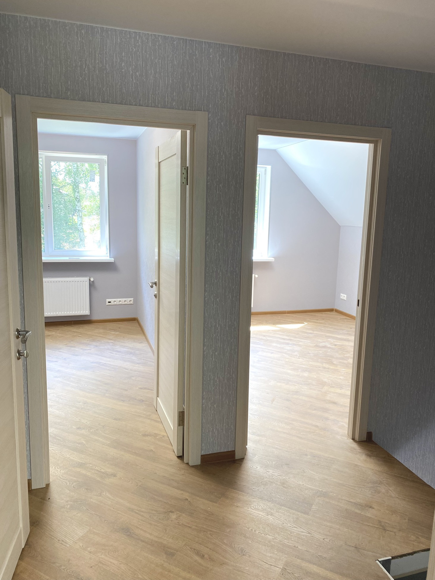 На данный момент без внутренней отделки. С отделкой цена будет выше. Отделочные работы на фотографиях выполнены в соседнем доме с идентичной планировкой, можно приехать посмотреть.