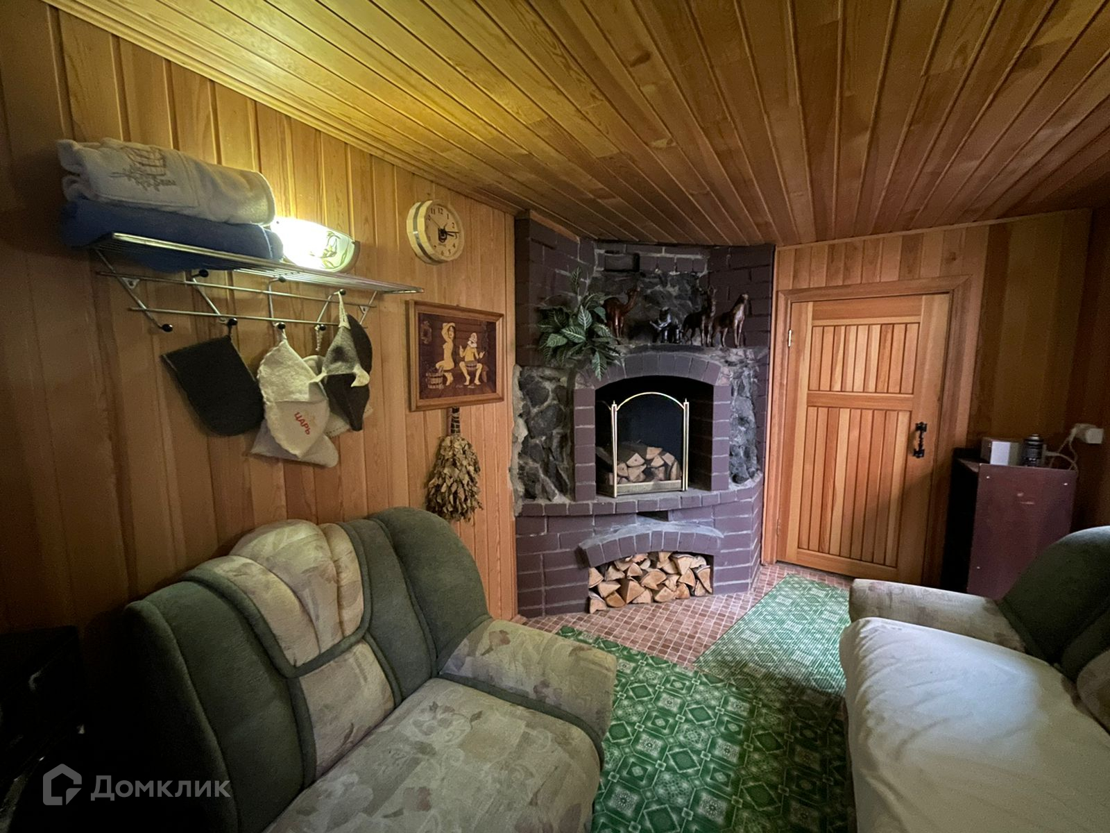 Баня с комнатой отдыха с большим камином.