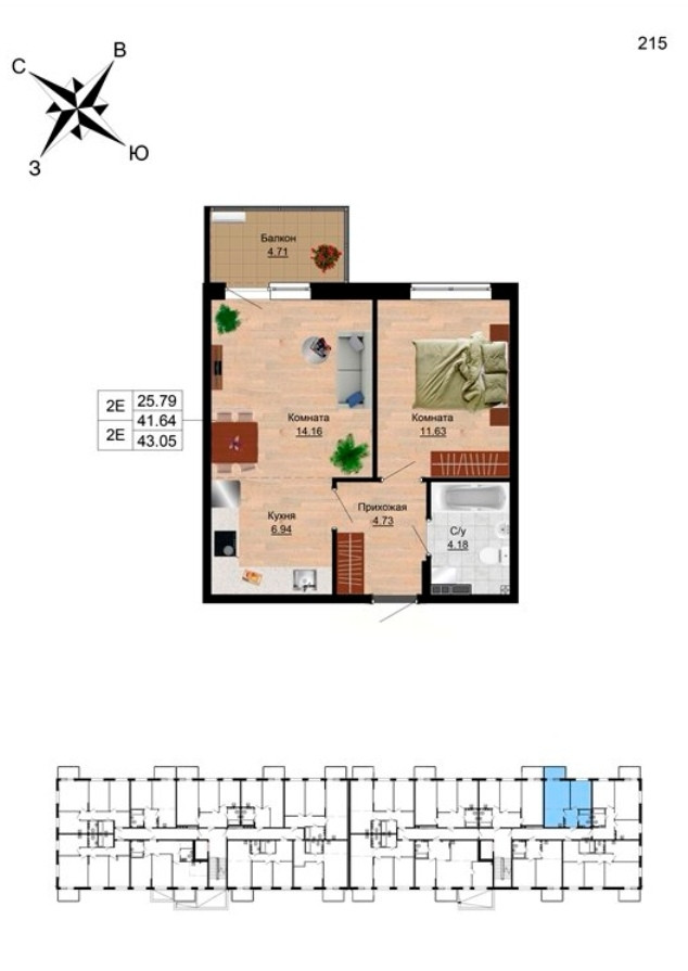 Количество комнат 2