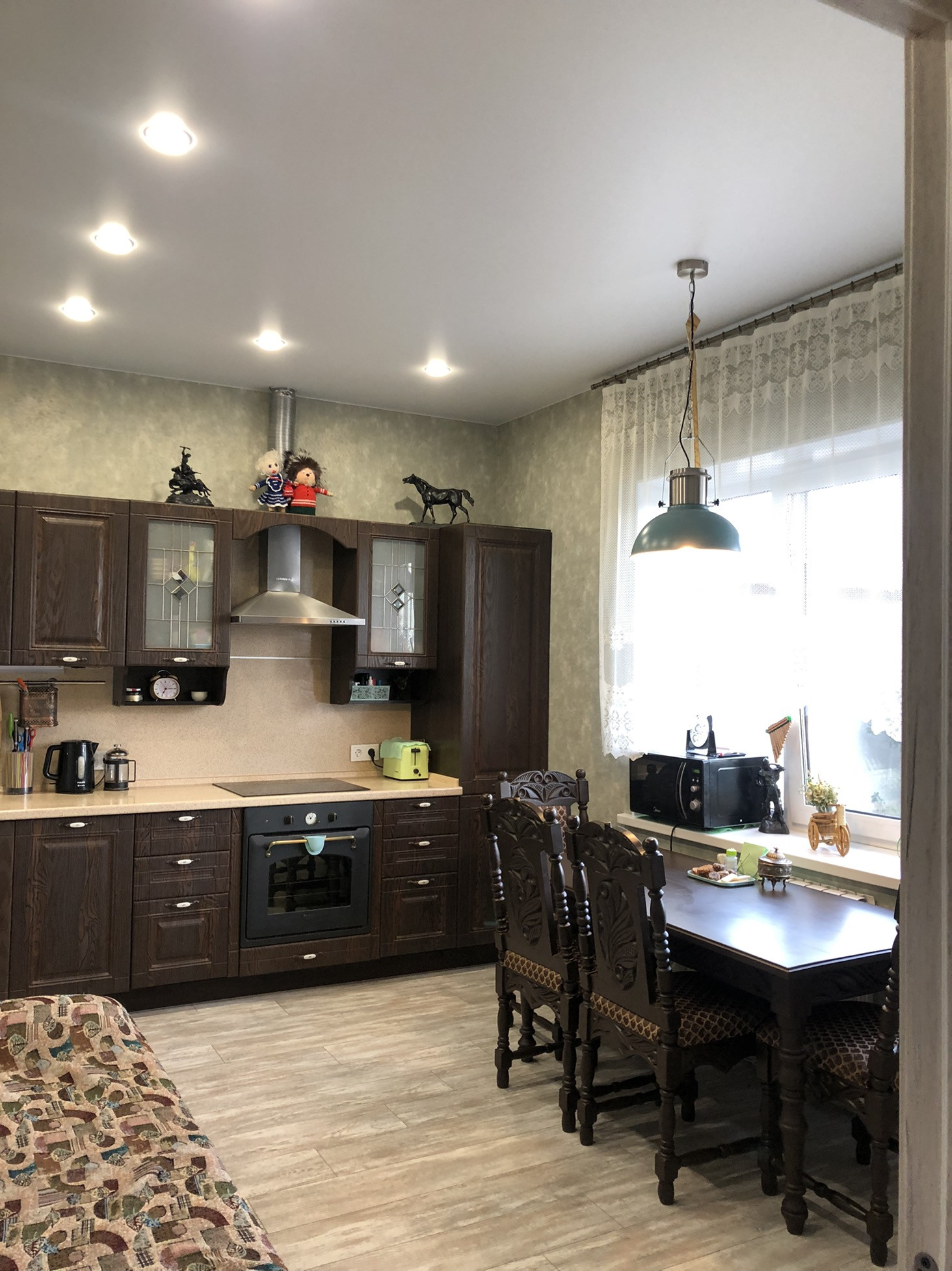 Уютная кухня подойдёт для большой семьи.