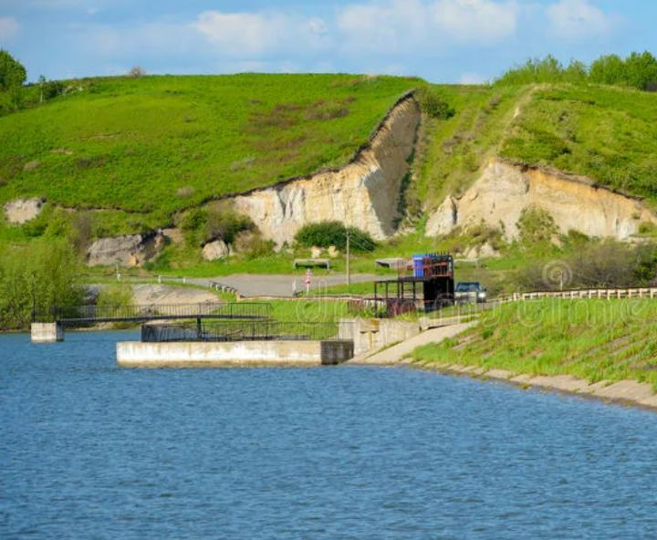 Рядом красивое озеро.