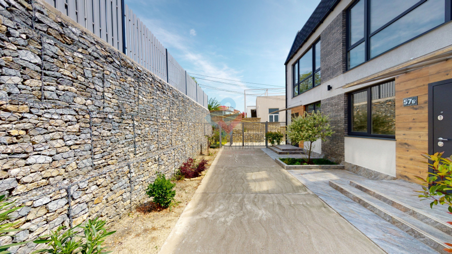Комплекс состоит из четырех сблокированных домов с площадью  212 кв.м. В таунхаусе предусмотрена свободная планировка, вы можете сделать столько комнат, сколько вам нужно, три этажа для творчества! Вокруг дома все прибрано и аккуратно облагорожено, высажены тропические деревья, зона барбекю, гараж на три машиноместа у каждого таунхауса.