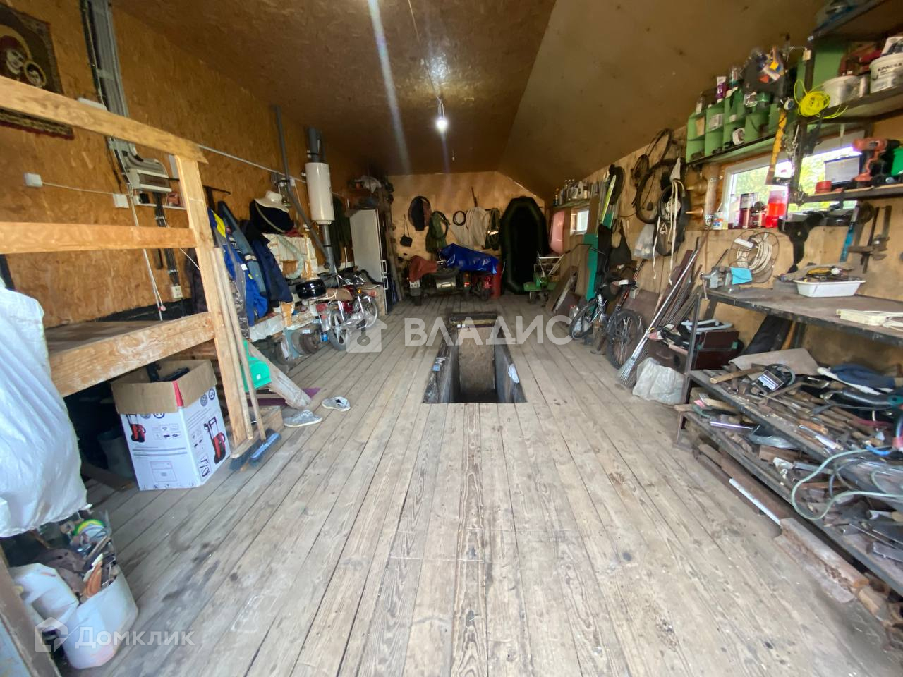 Под одной крышей, гараж с бетонированной ямой и местом для хранения солений. Вход в гараж прям из дома.