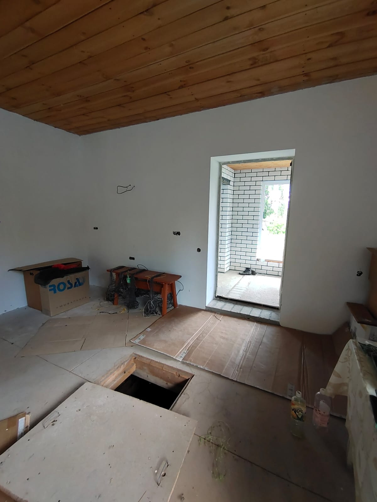 В  доме оштукатурены стены, выравнены потолки, новые трубы, установлены приборы учета, окна ПВХ.