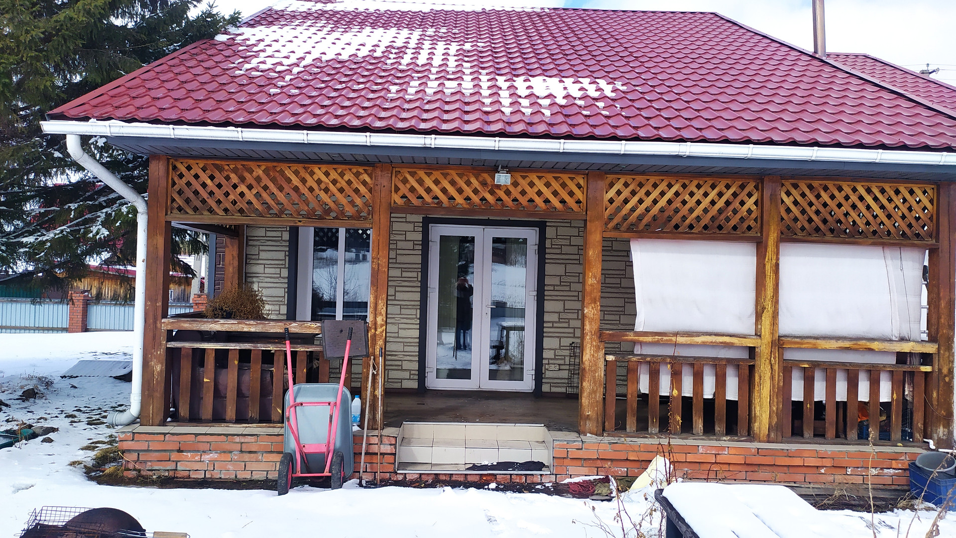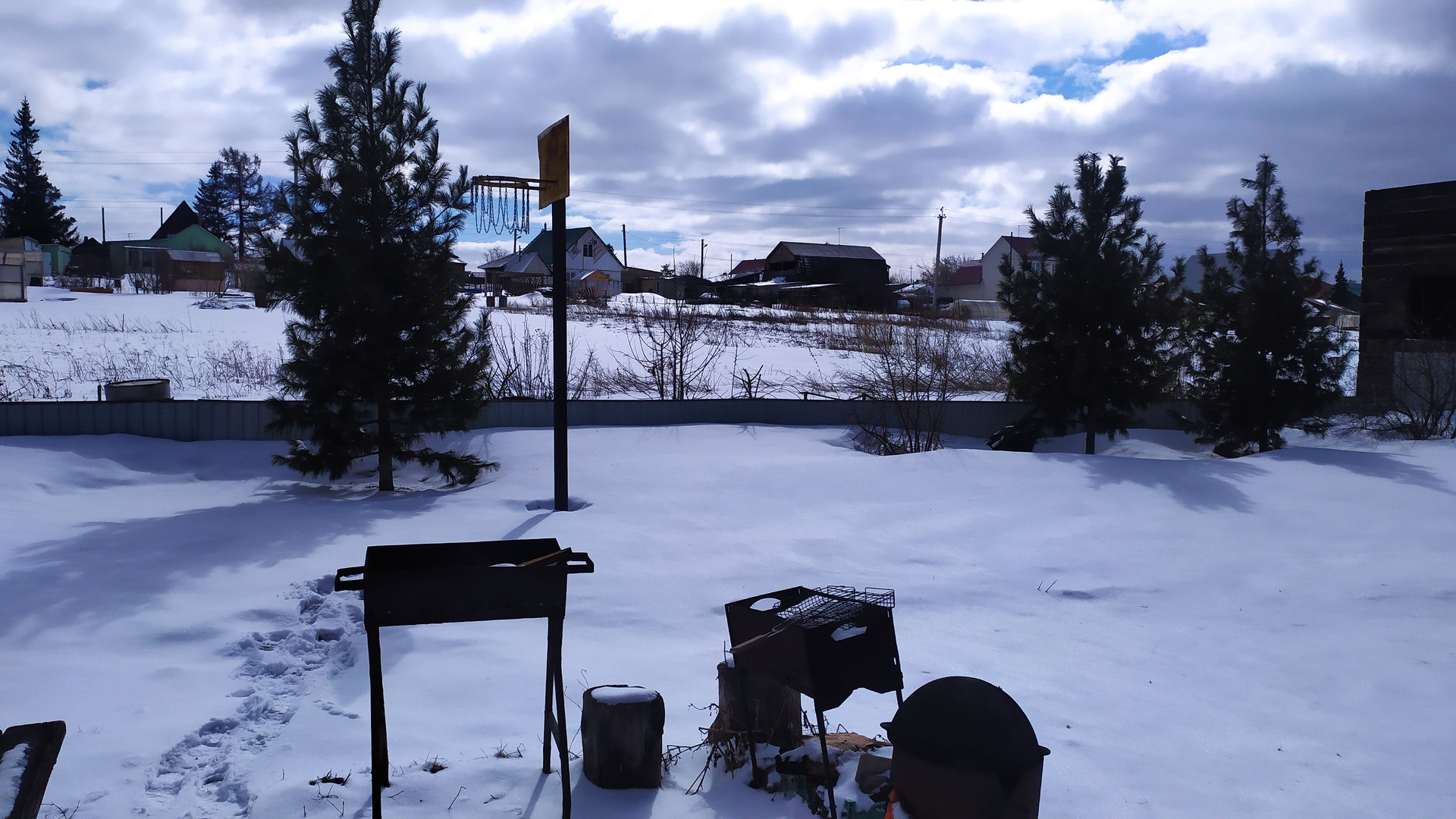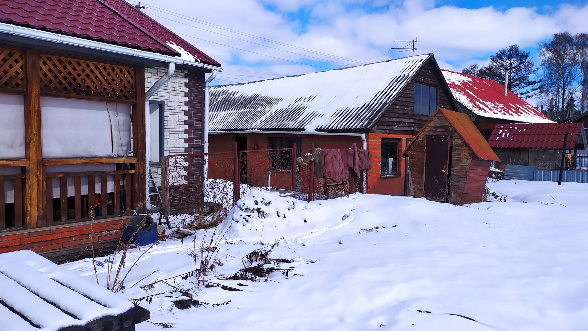 Баня, гараж, летняя кухня, дровник и углярка все под одной крышей.