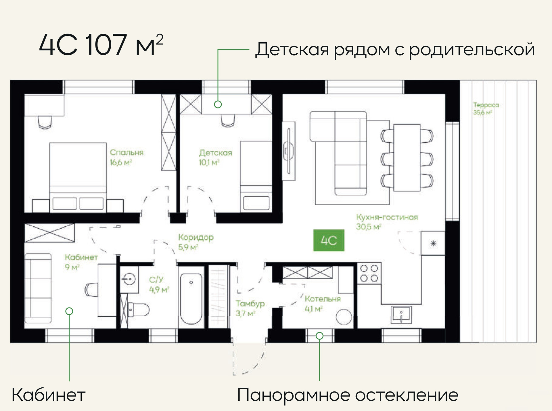 Общая площадь 107 м2