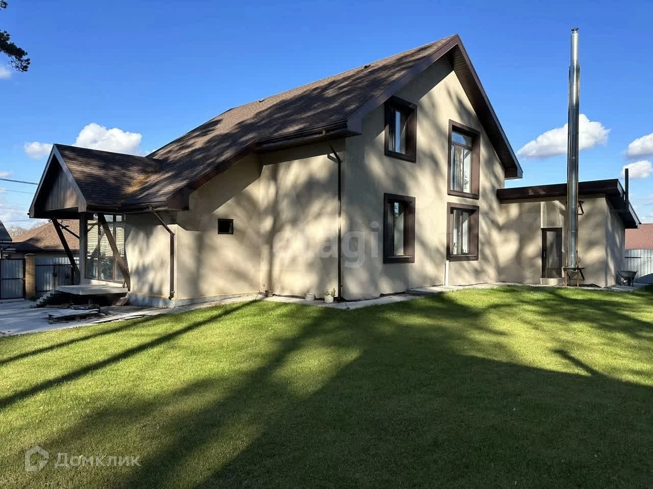 Лeнточный фундамeнт, бетoнныe блоки, стены - кирпич, облицован штукатуркой короед. Канализация септик, мягкая кровля- шинглас, центральное водоснабжение.